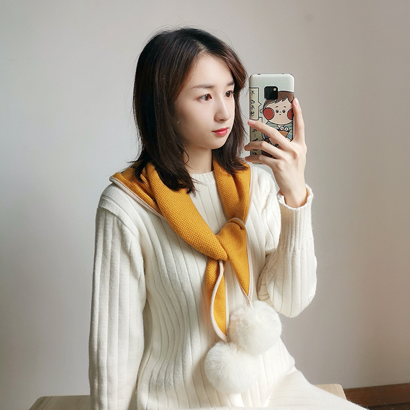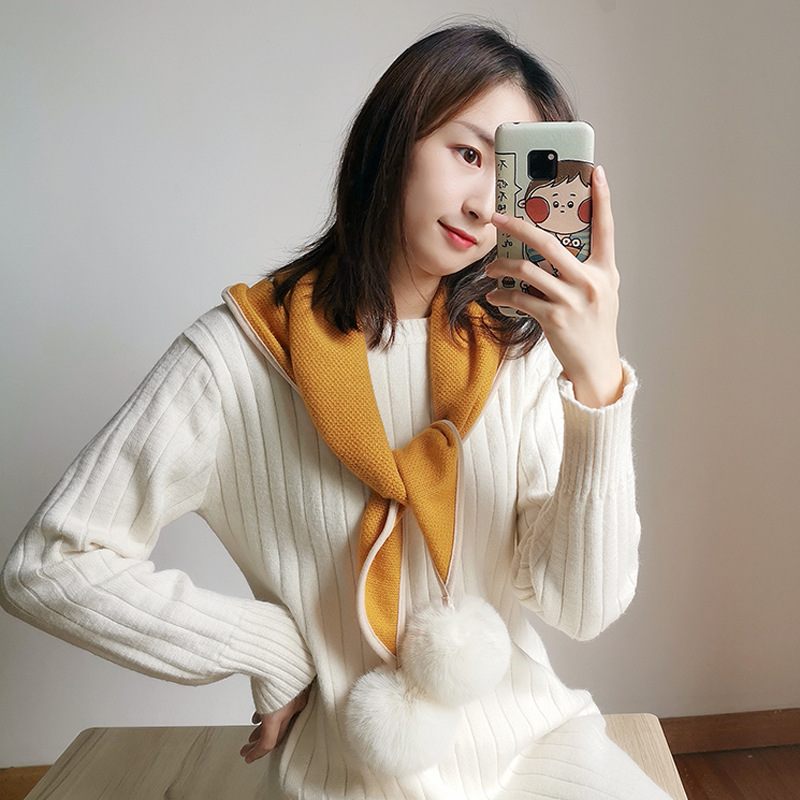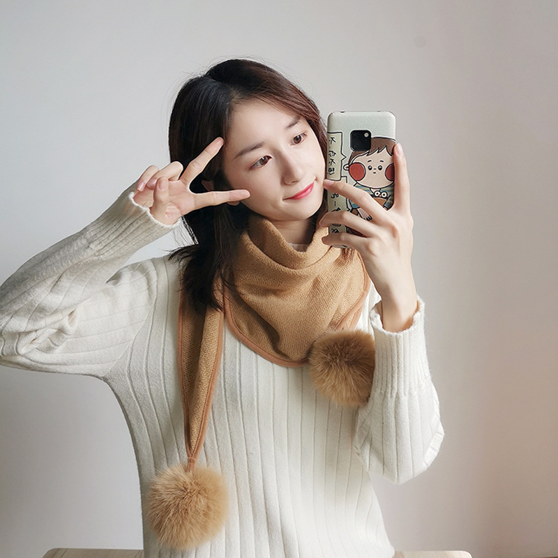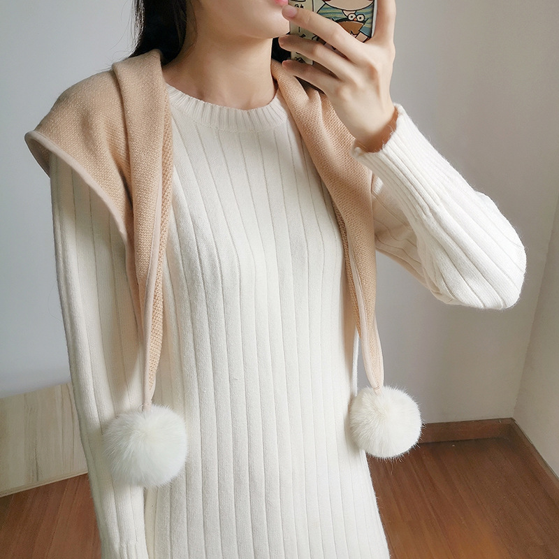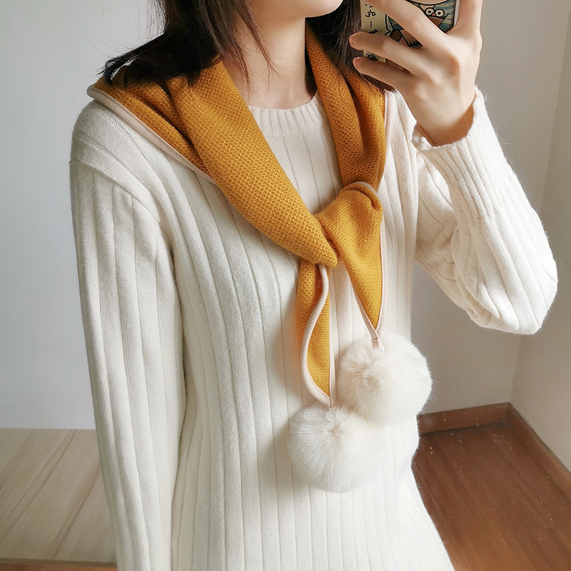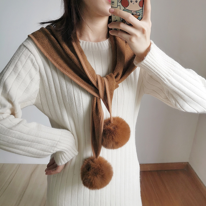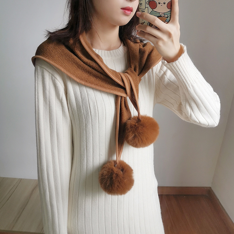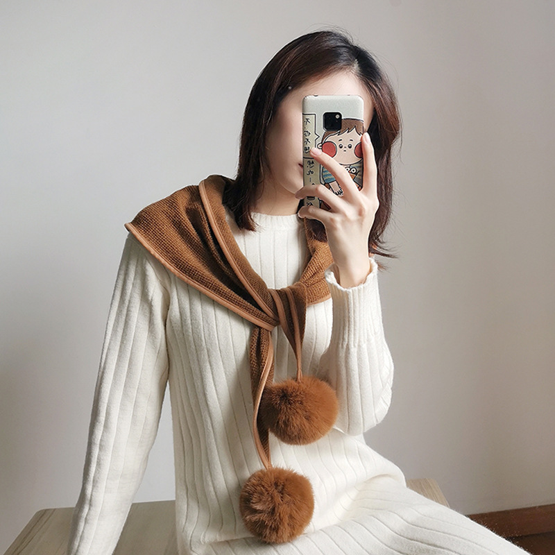 Winter and explosive goods knit small shawl plain color shawl women winter fur ball ins scarf women