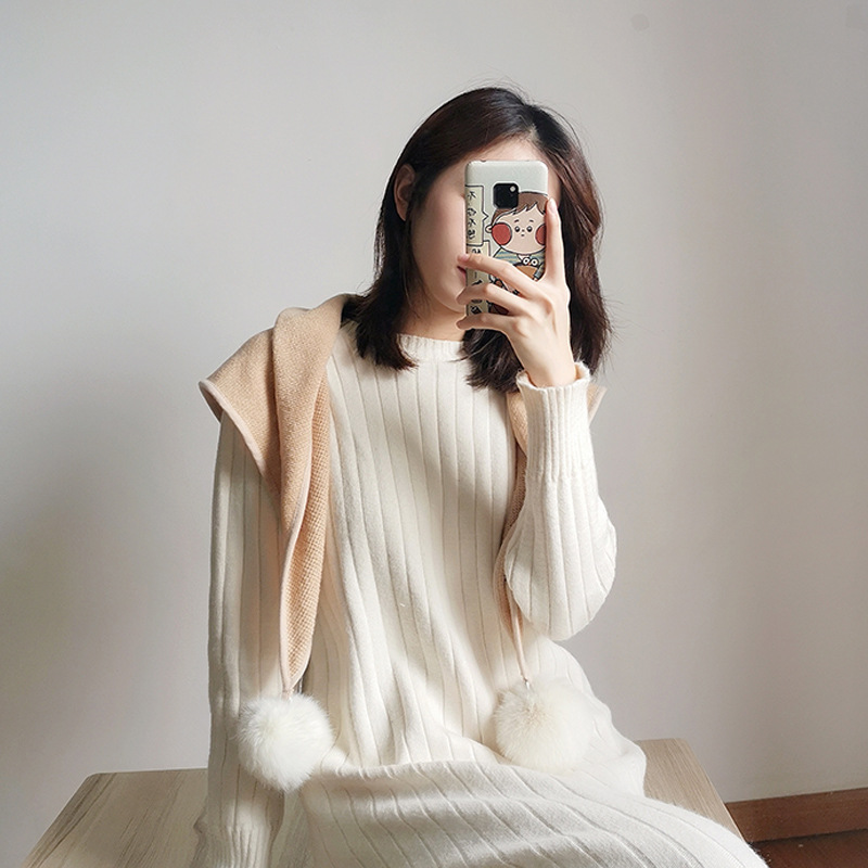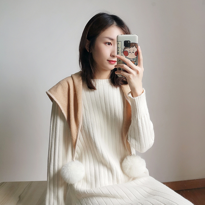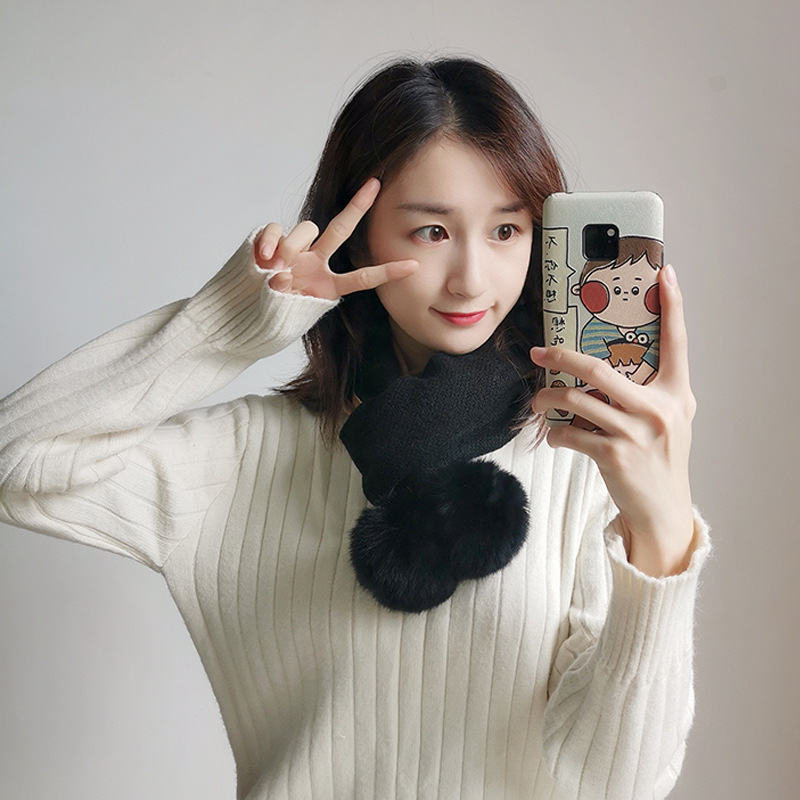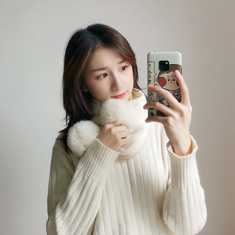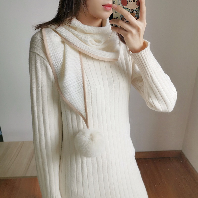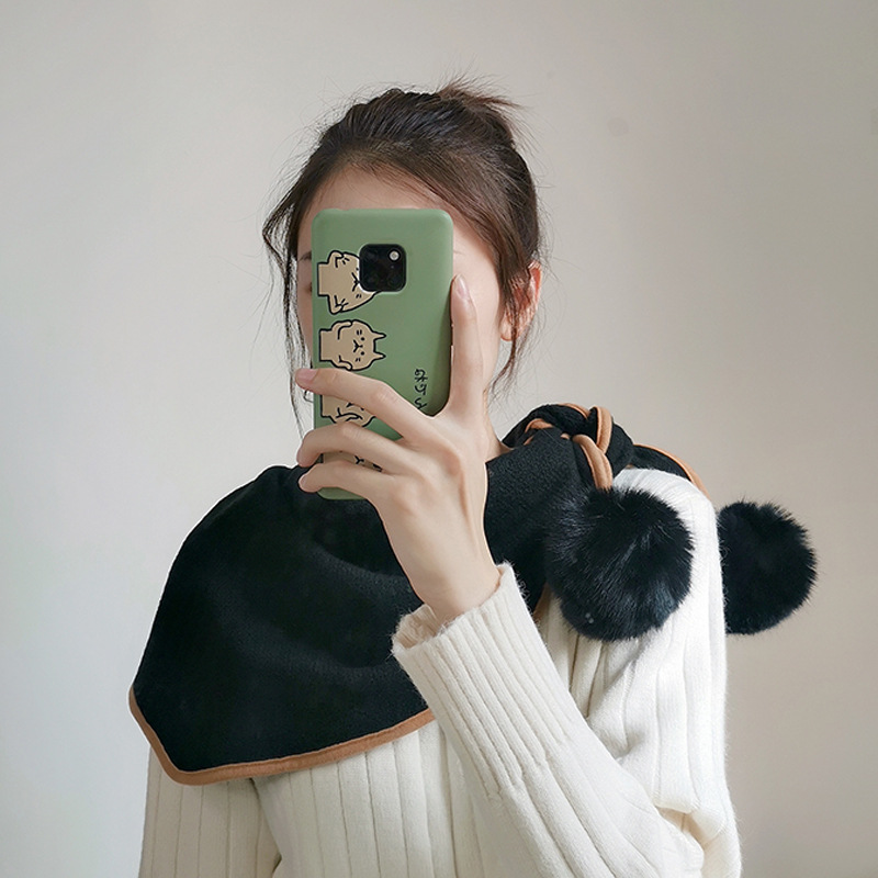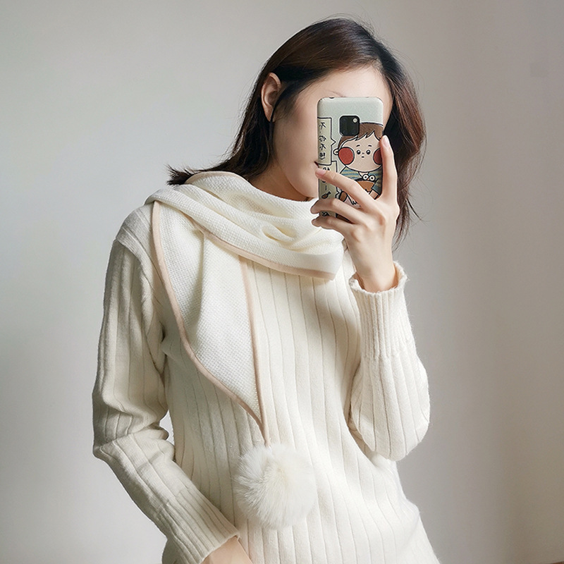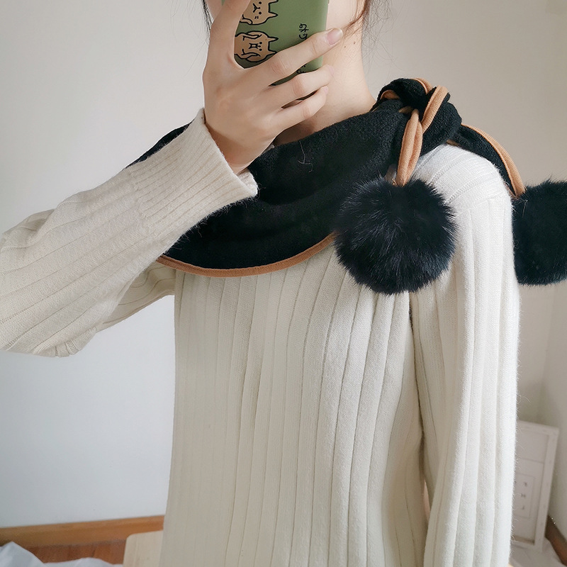 Winter and explosive goods knit small shawl plain color shawl women winter fur ball ins scarf women