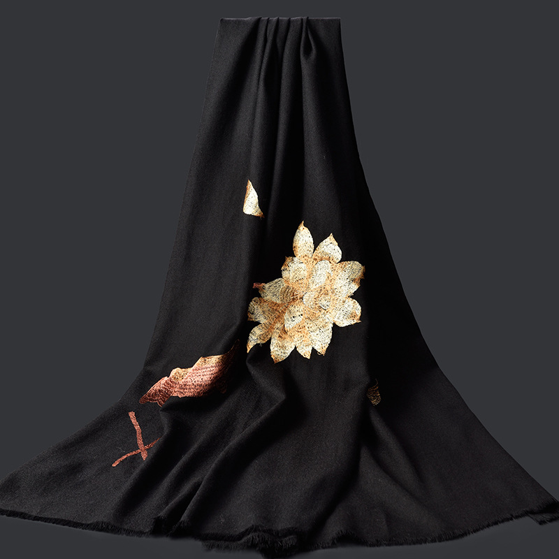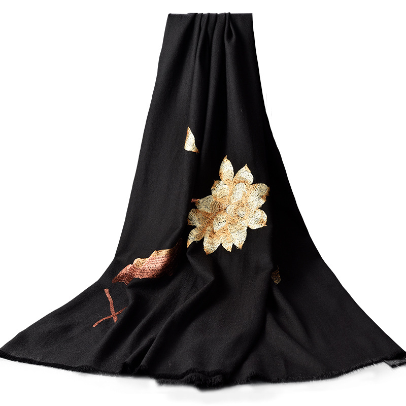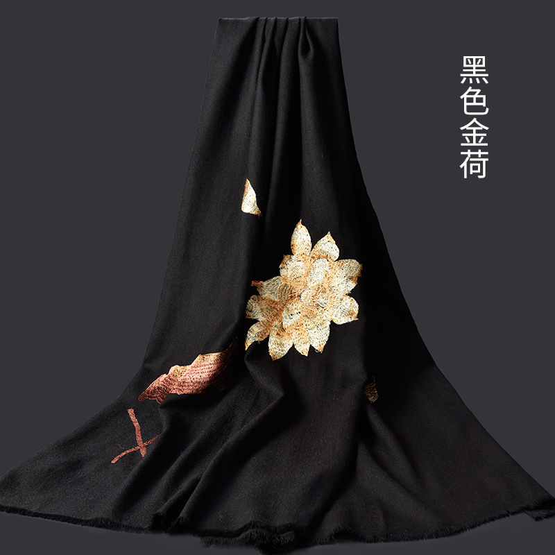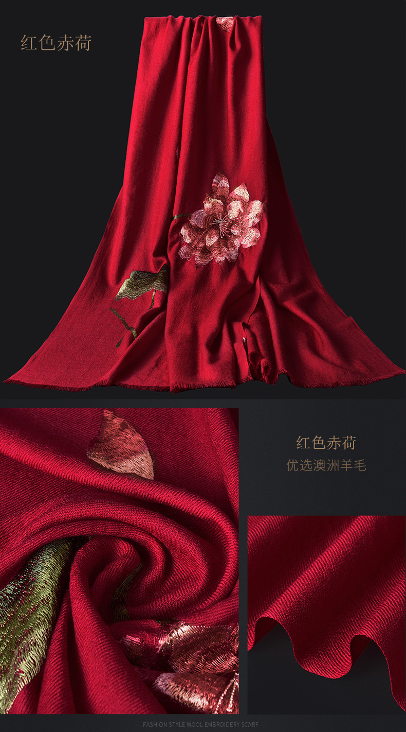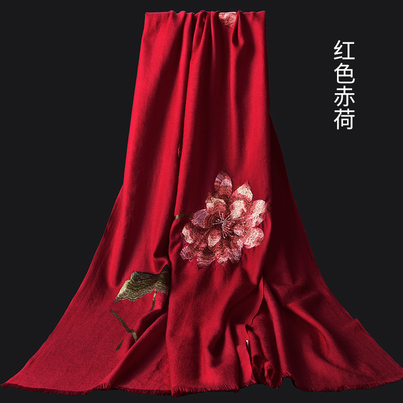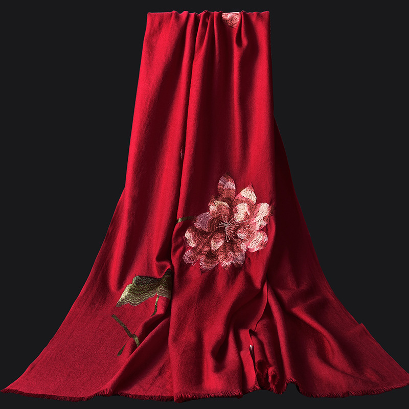 Winter new products 100%wool scarf for women embroidered warm red long Mother petite cashmere shawl Factory Outlet