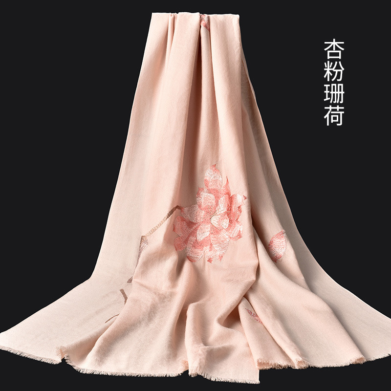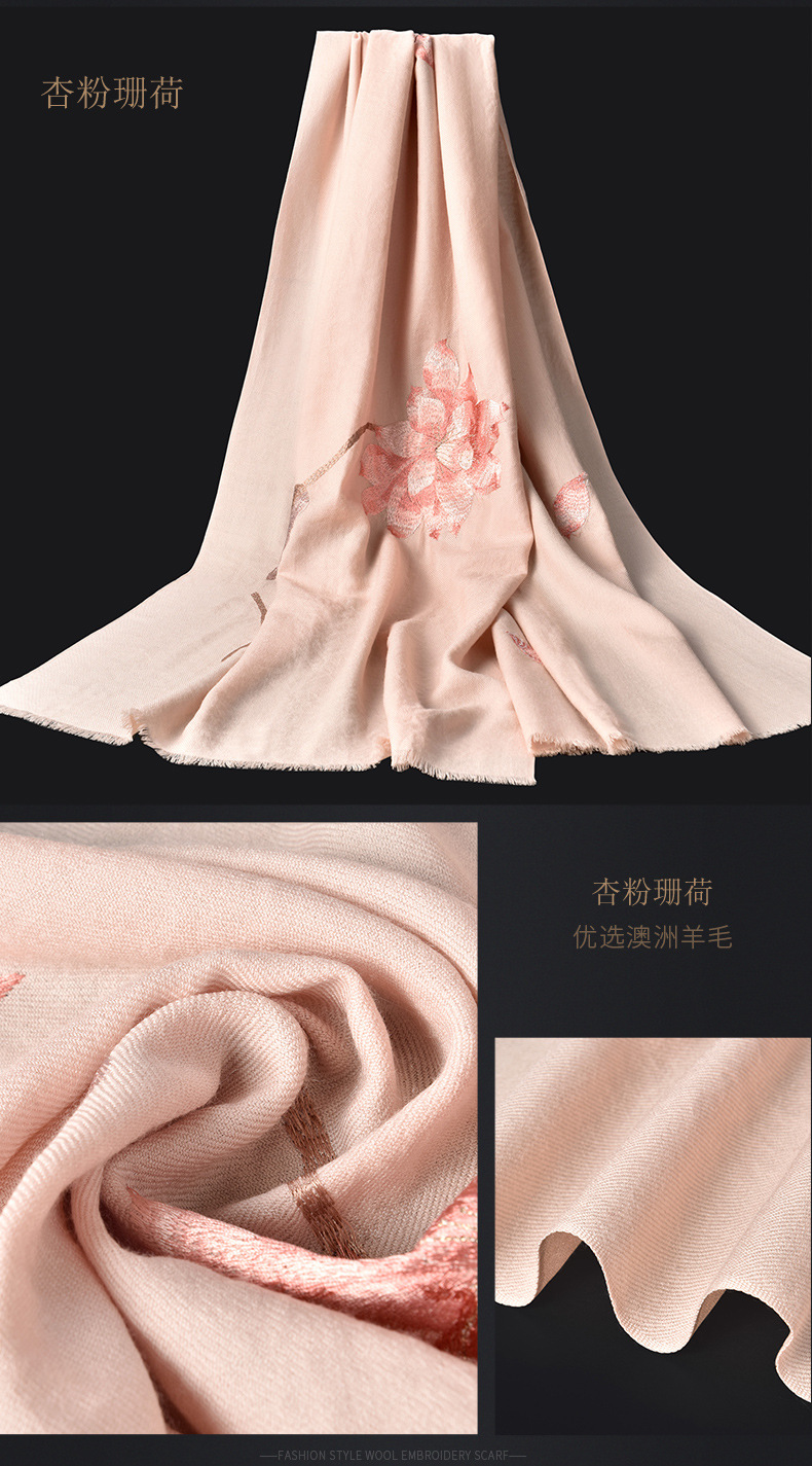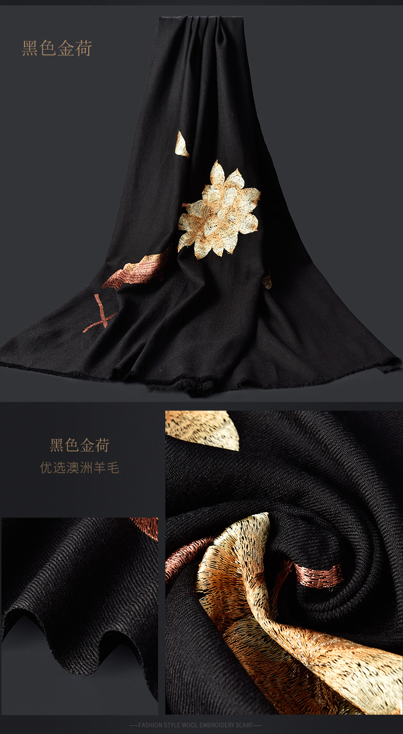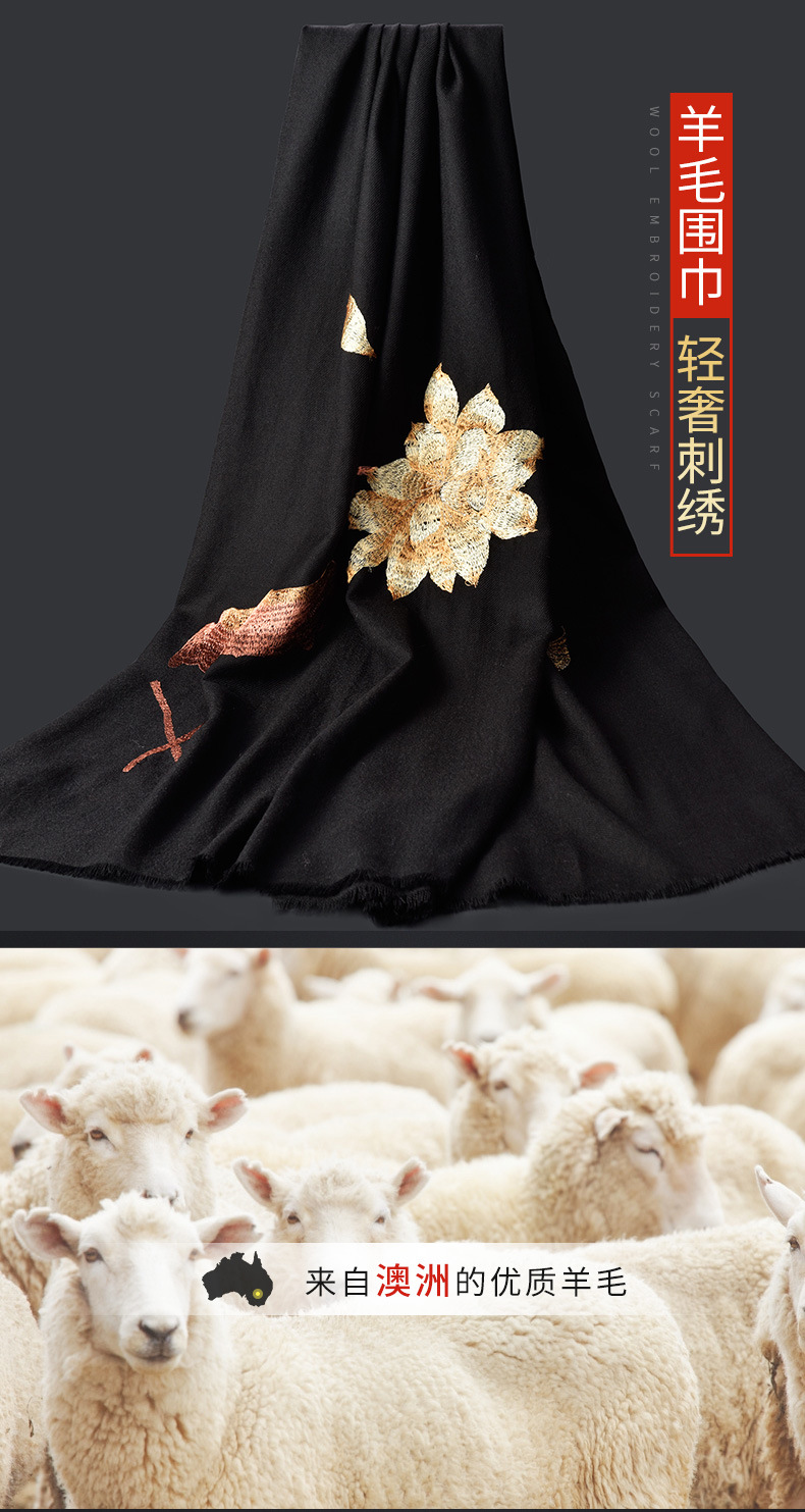Winter new products 100%wool scarf for women embroidered warm red long Mother petite cashmere shawl Factory Outlet
