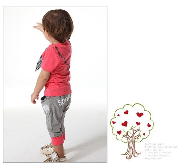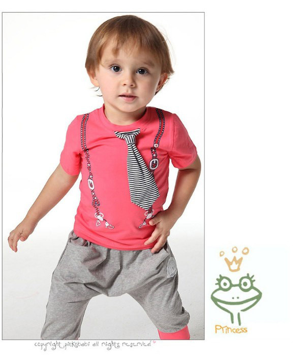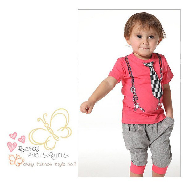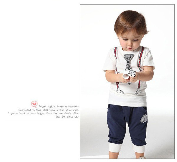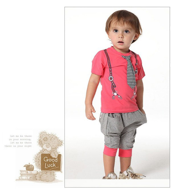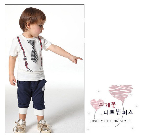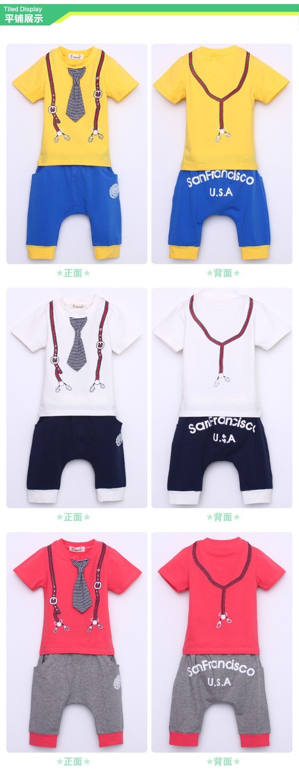 E Wen children’s clothing wholesale boys summer tie of paragraph short-sleeve sports suit 116