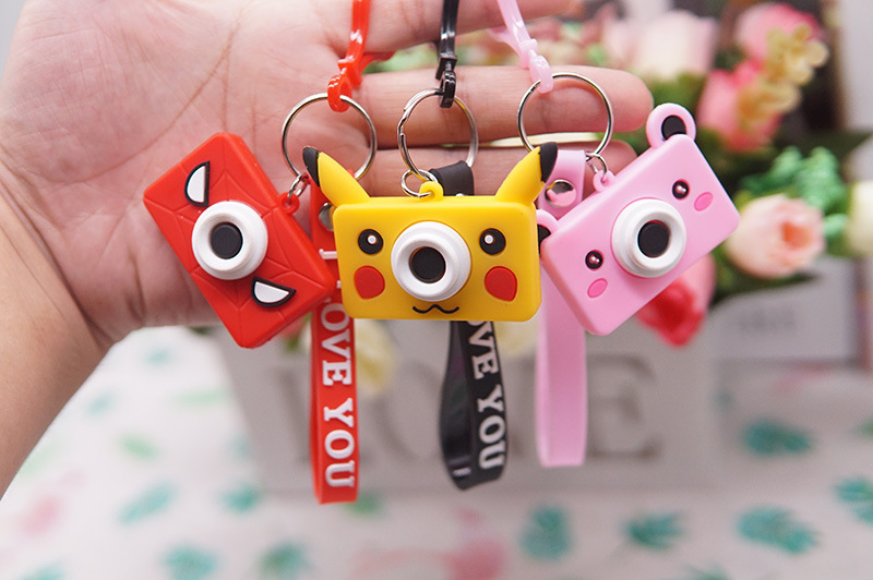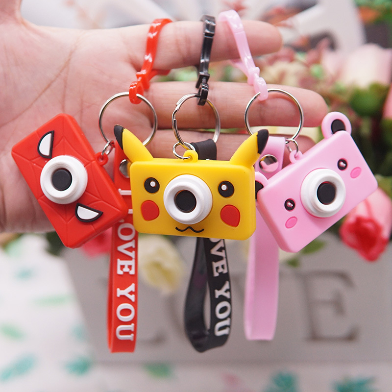 Cartoon soft plastic camera keychain PVC key chain Creative car keychain pendant