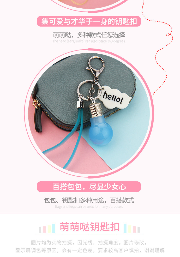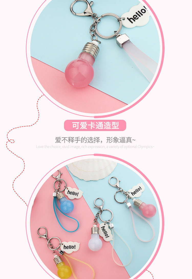 Keychain light bulb colorful flashing led key chain Creative small gift diy accessories