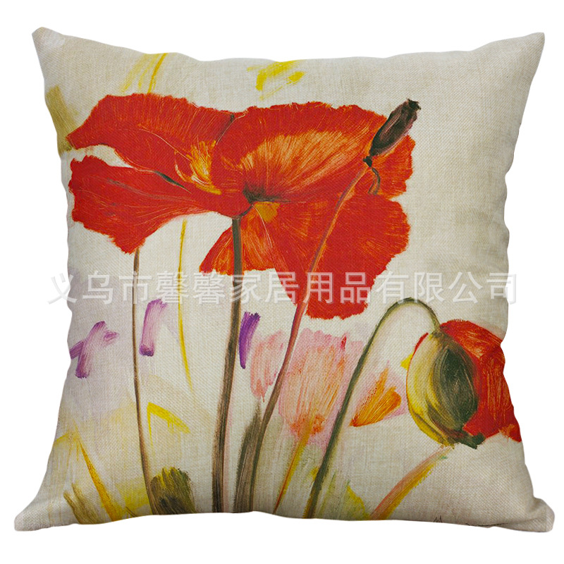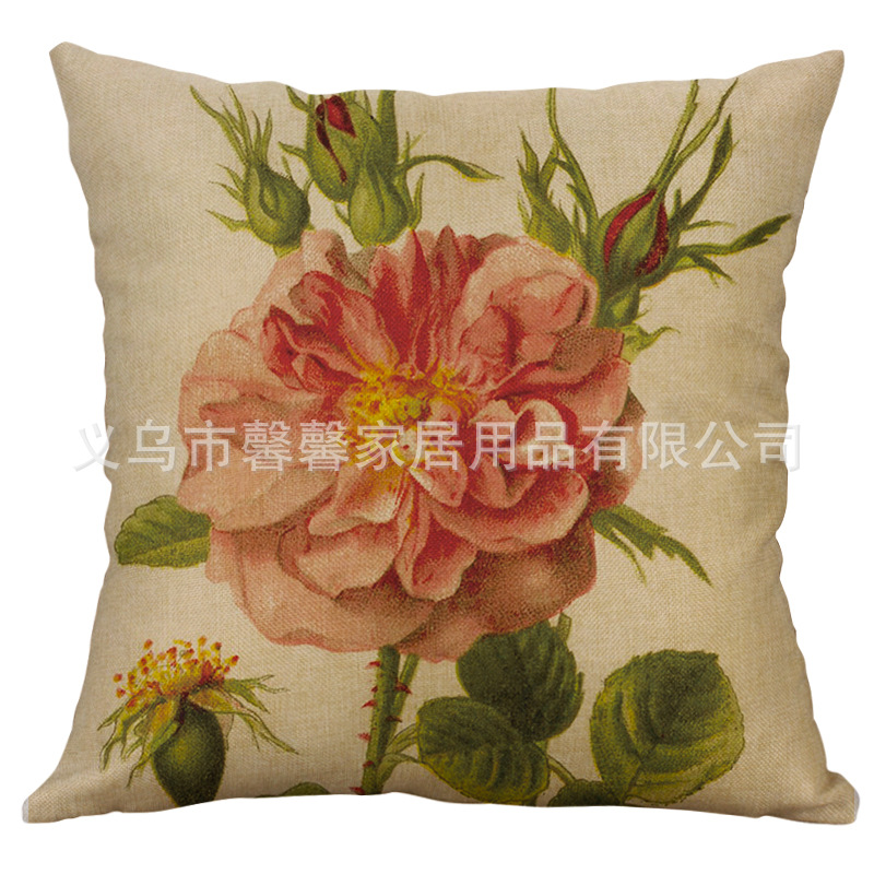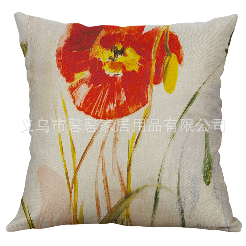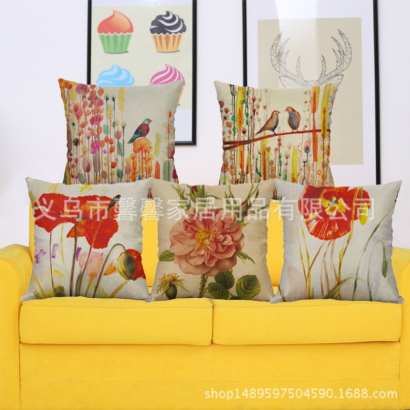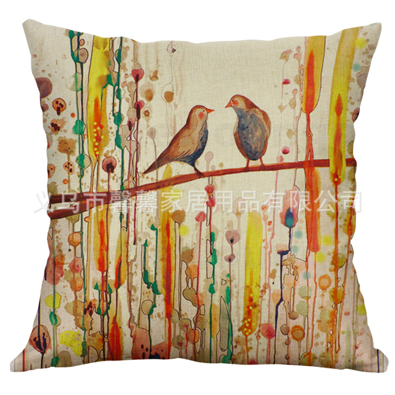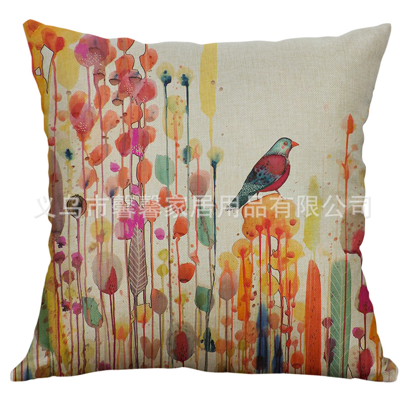 Factory direct single simple impression wind pillow flower and bird ink painting pillowcase car sofa cushion