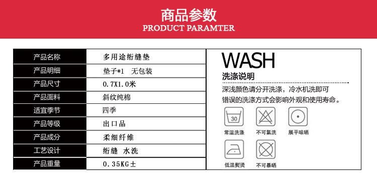- Sub-component of filling: Cotton batting