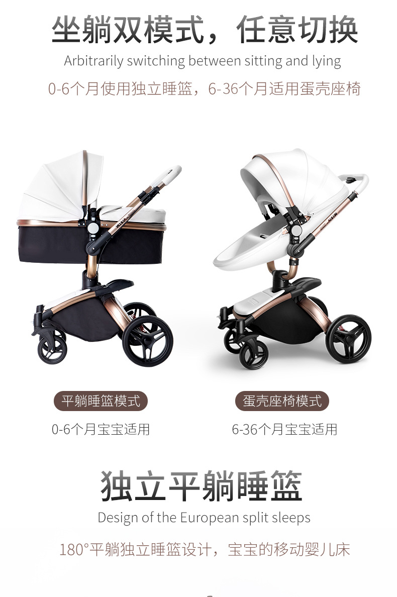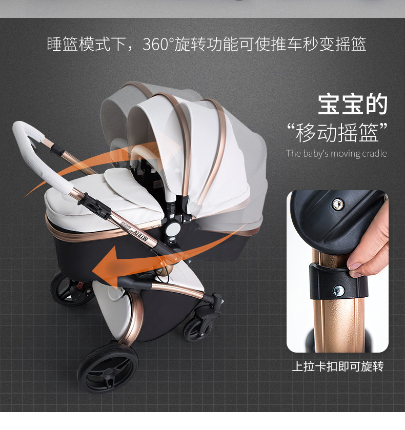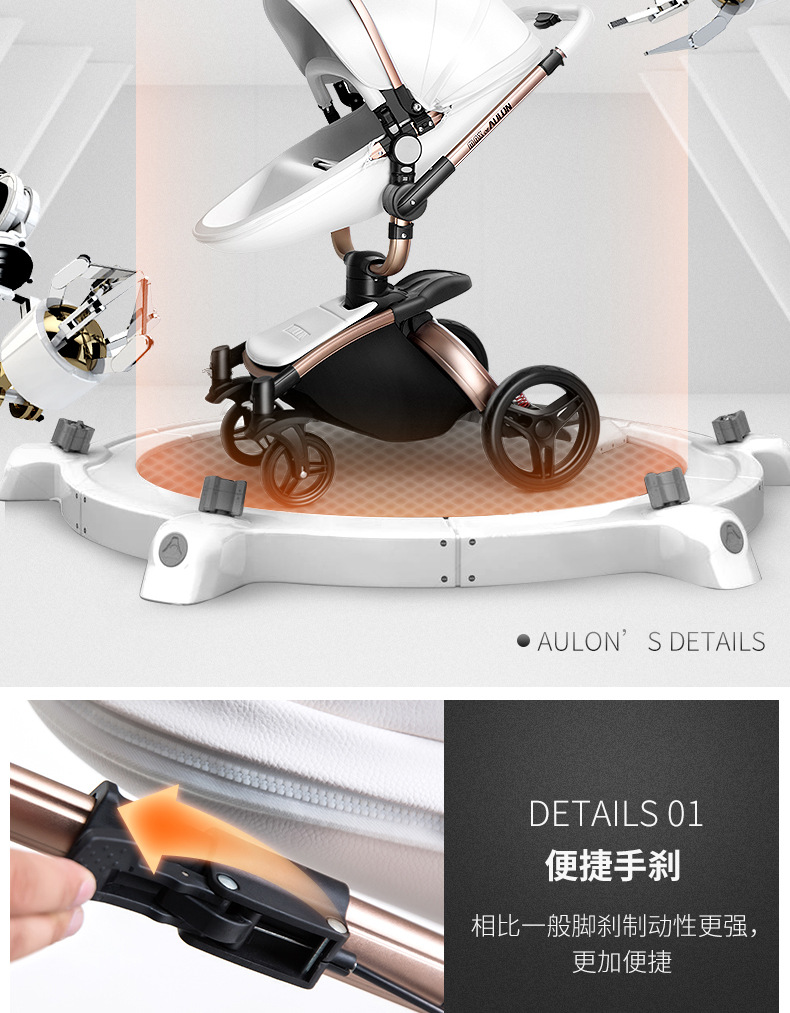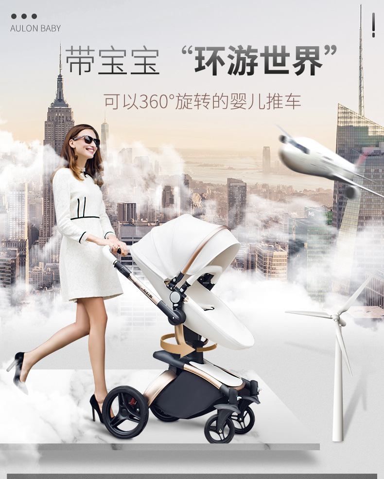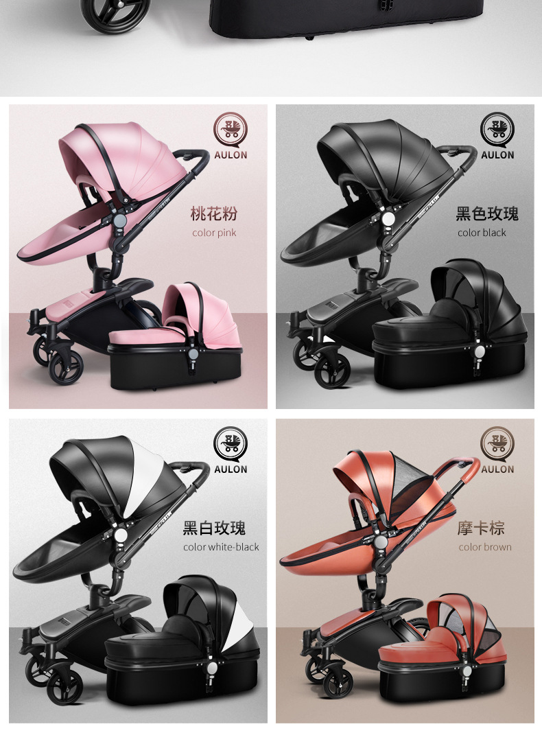 AULON Oyunlong stroller leather two-way high landscape shock baby stroller can sit lay trolley 906
