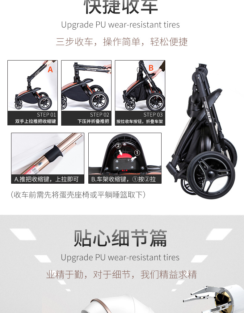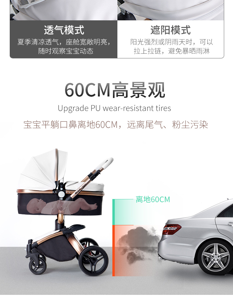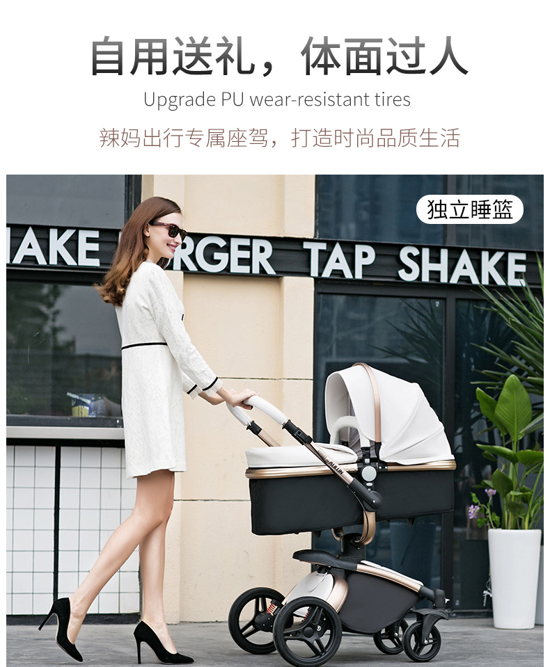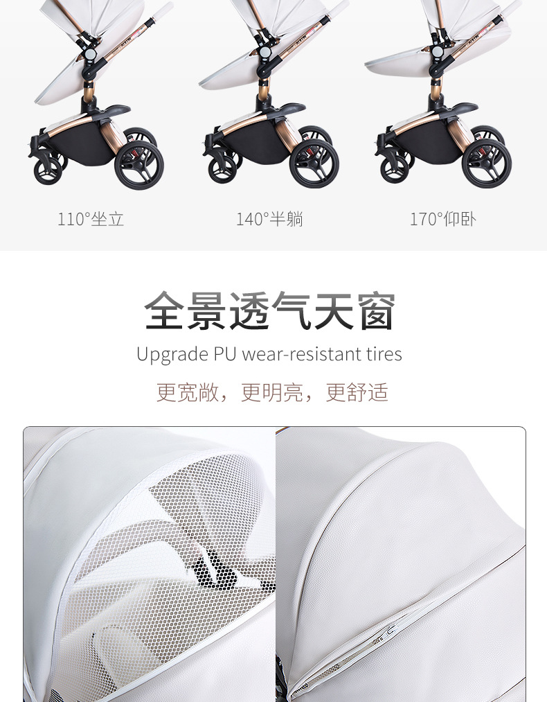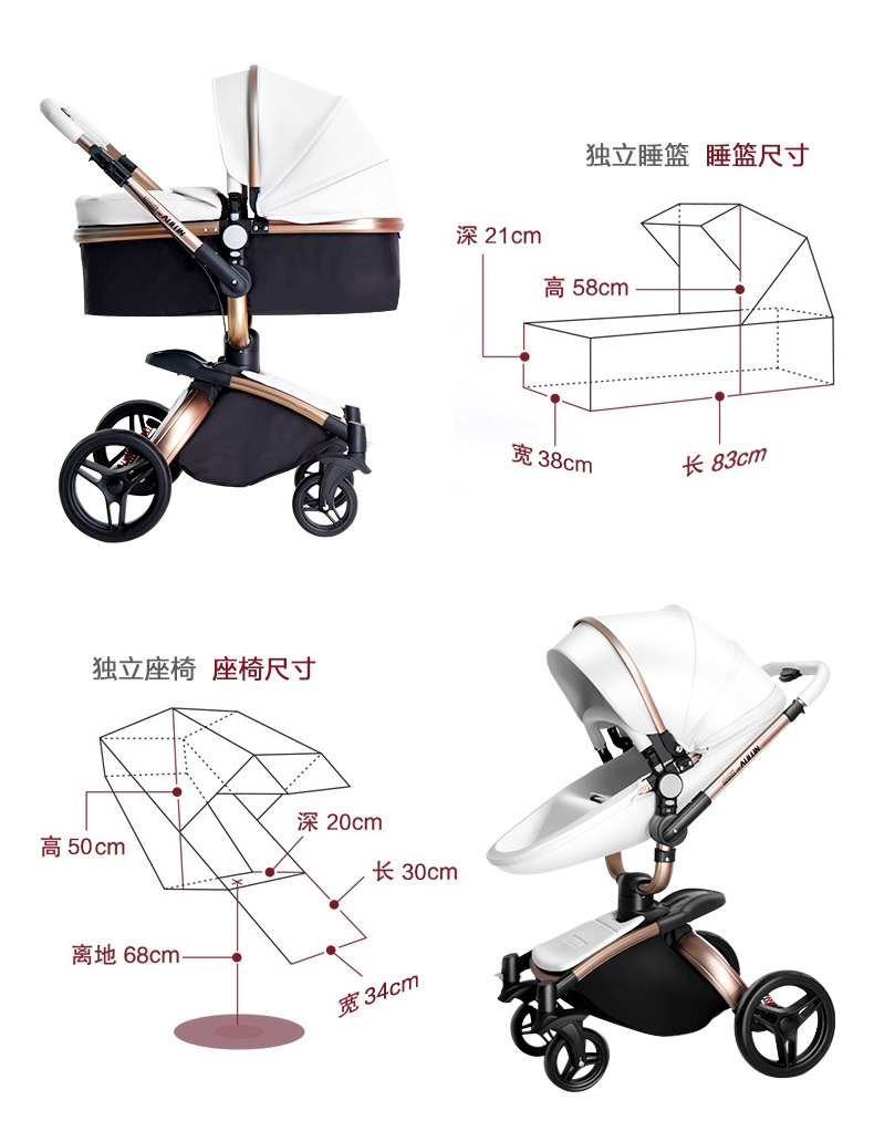 AULON Oyunlong stroller leather two-way high landscape shock baby stroller can sit lay trolley 906