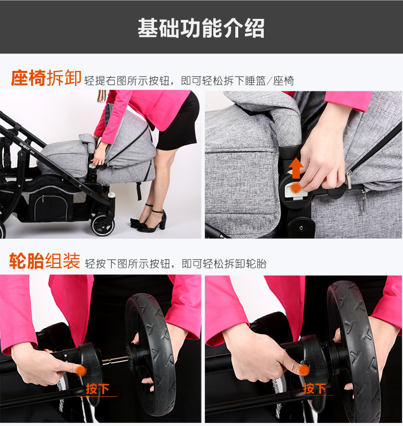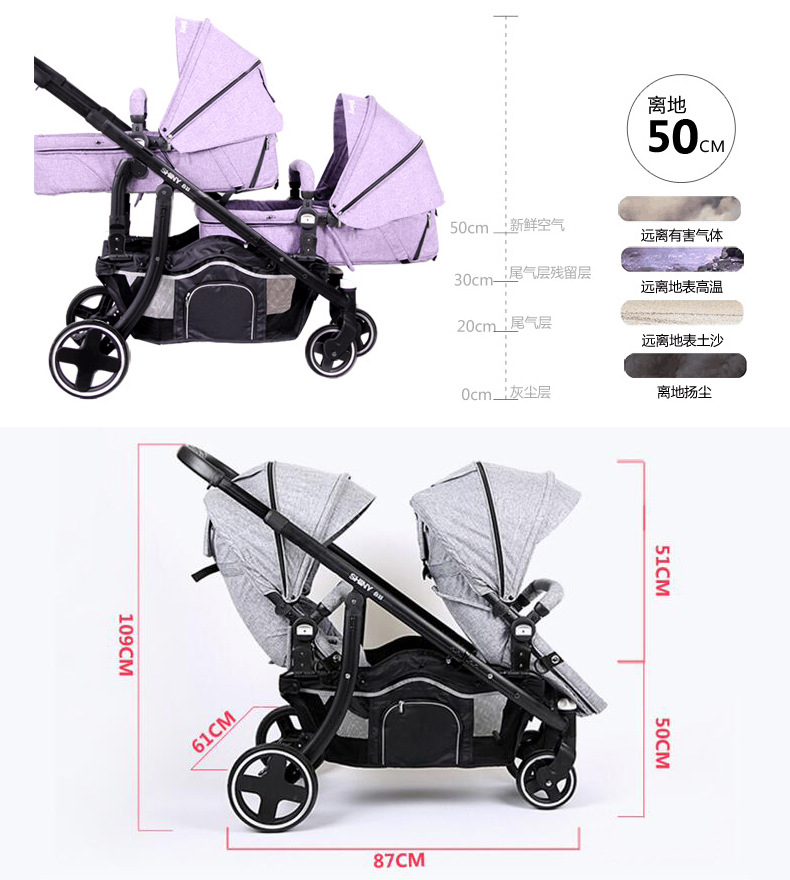 Ubest twin baby stroller second child can sit lie detachable four-wheeled cart light folding bike