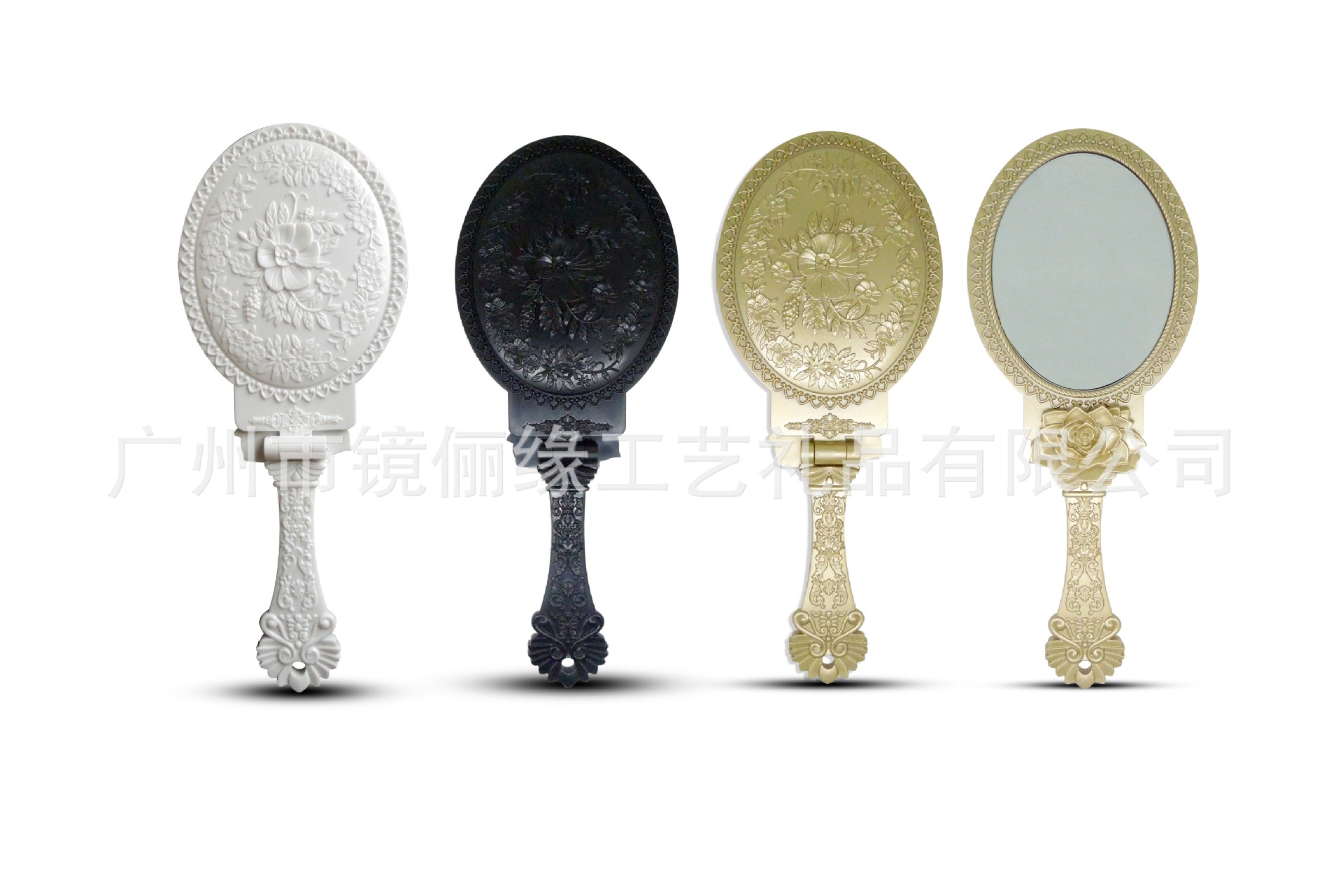 Creative folding handheld sz mirror retro rose pattern dressing mirror high-grade ABS plastic makeup mirror