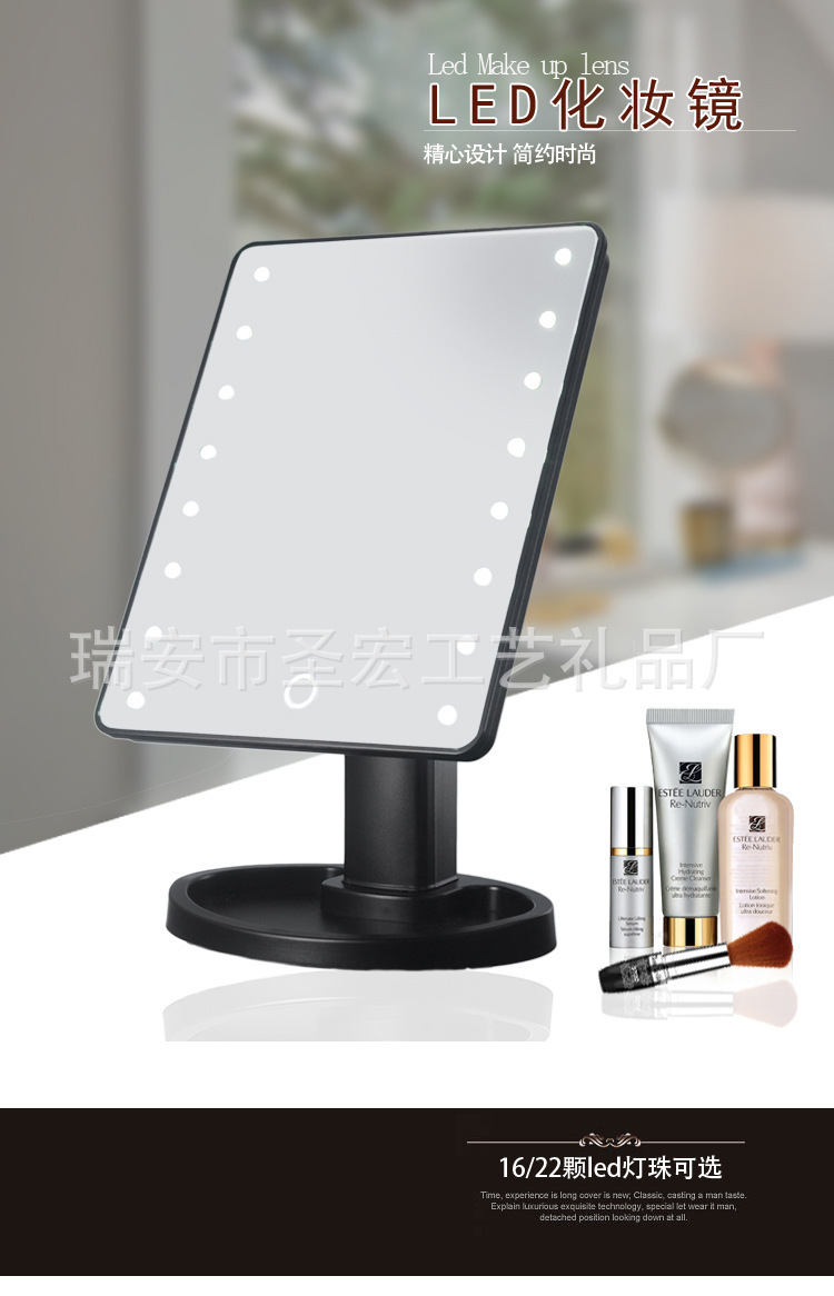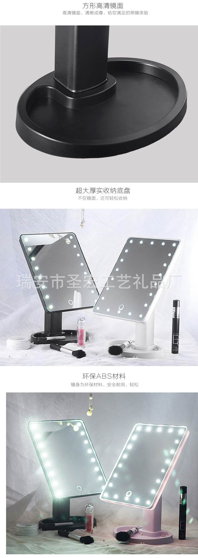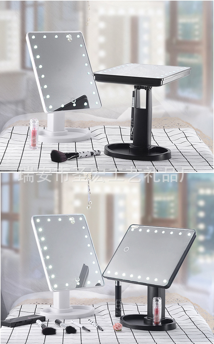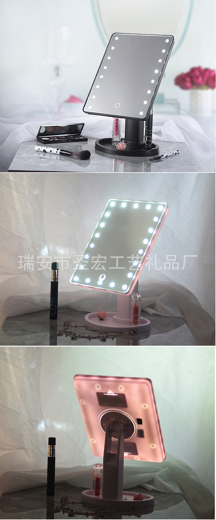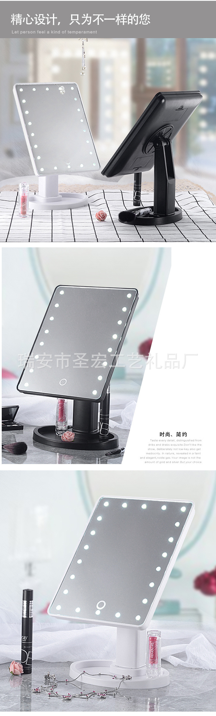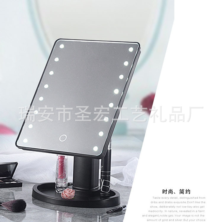 Large Led Mirror Makeup Mirror 22 Light Desktop Dressing Mirror 360 Degree Rotating Touch Mirror