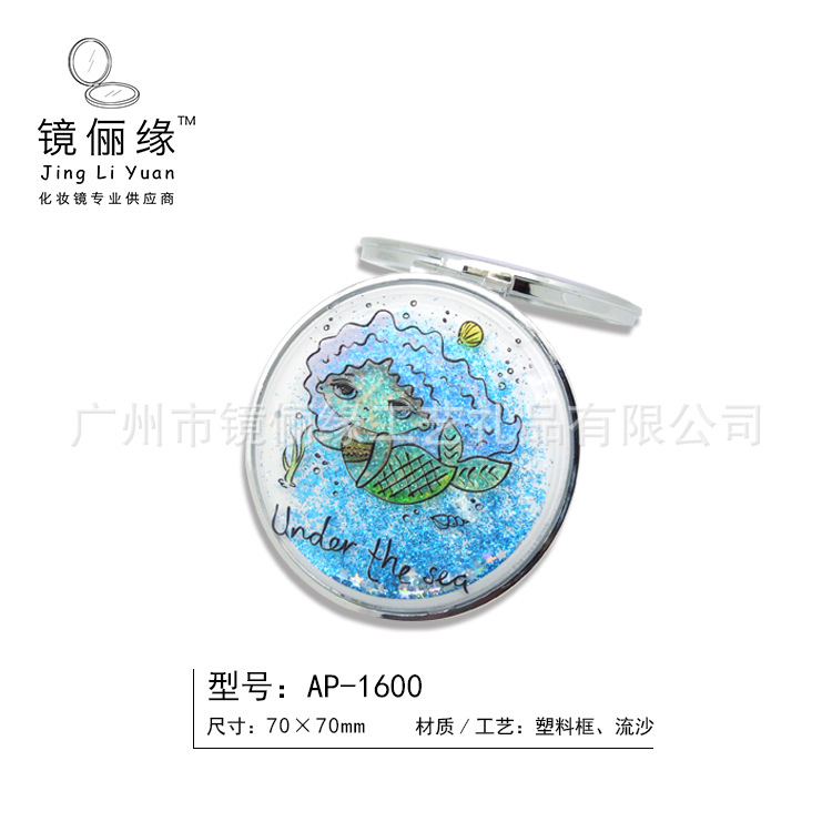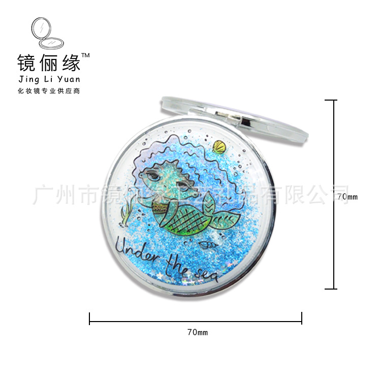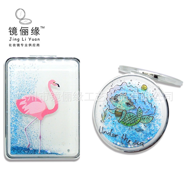 Liquid characteristic quicksand starry flash with gold powder rectangular round ABS plastic makeup mirror Harajuku style gift