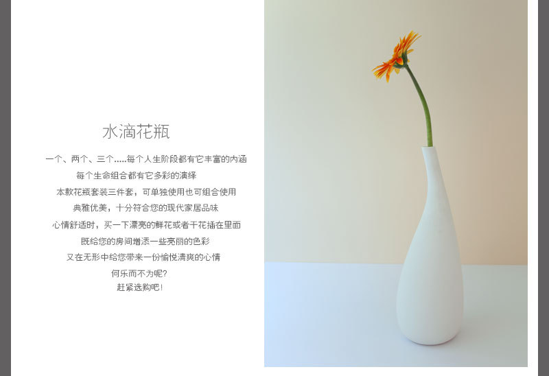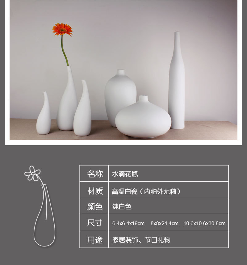 Original single white series glazed outer glazed modern art water drop vase three sizes