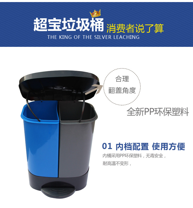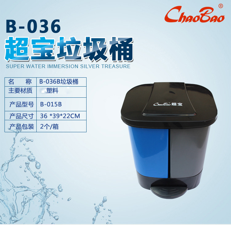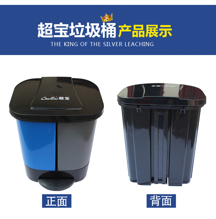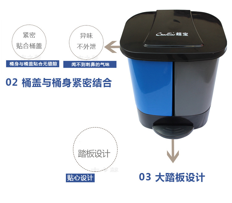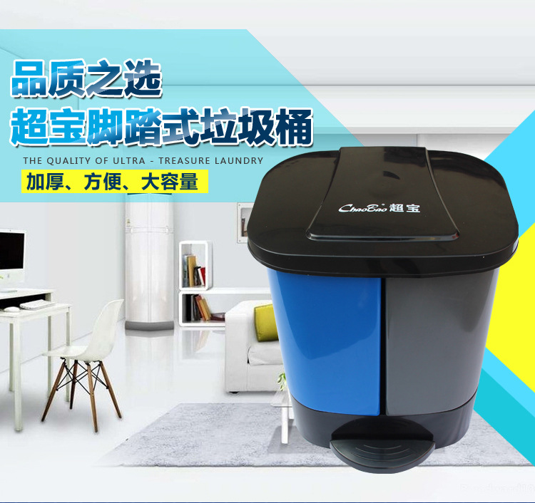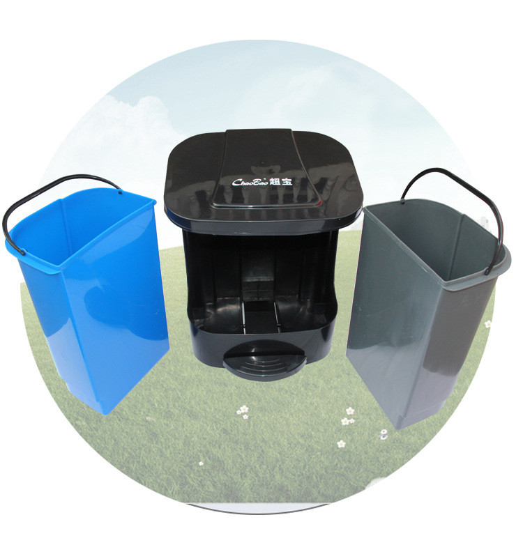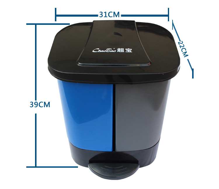 Chaobao B-036 pedal type trash can with lid plastic bin double barrel waste storage box