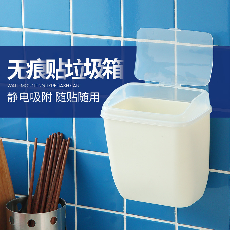 Kitchen wall-mounted trash can no trace stickers free punching bins wall hanging storage box storage box