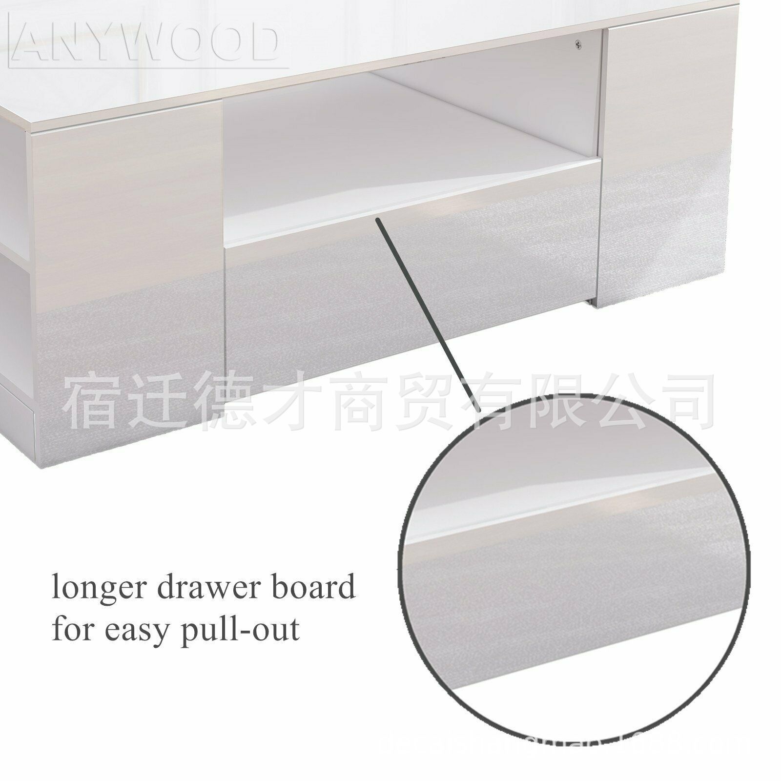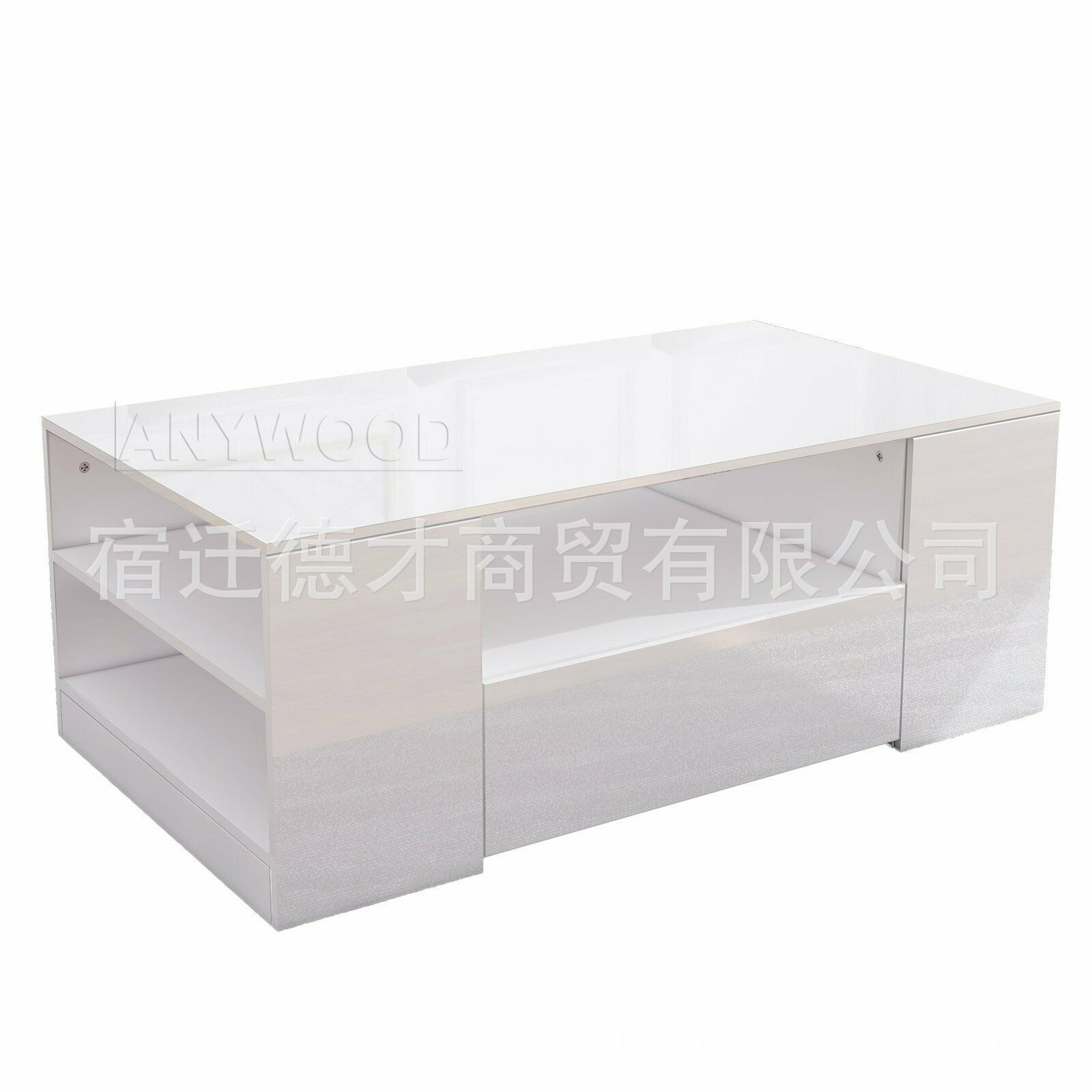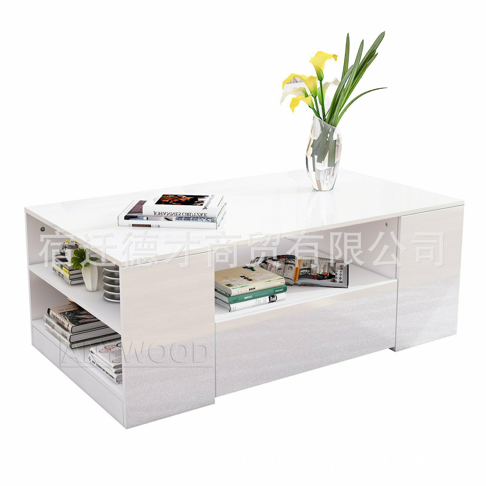 Modern White High Gloss Square Coffee Coffee Table Solid with 2 Storage Drawers High Glow LED Coffee Table