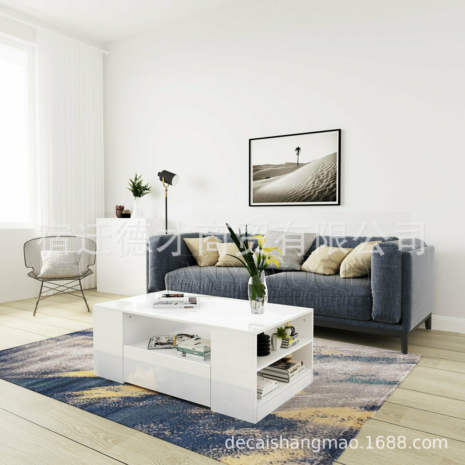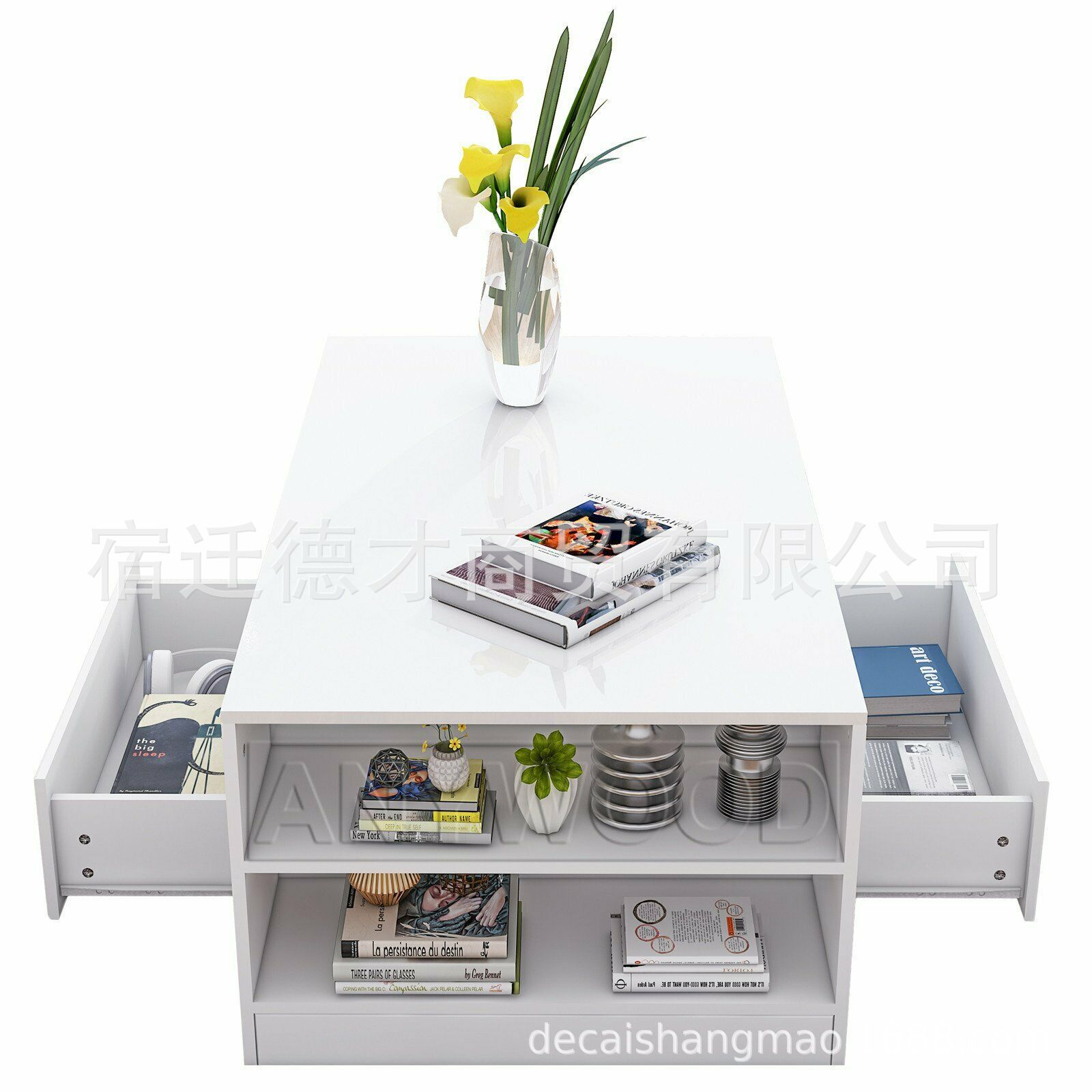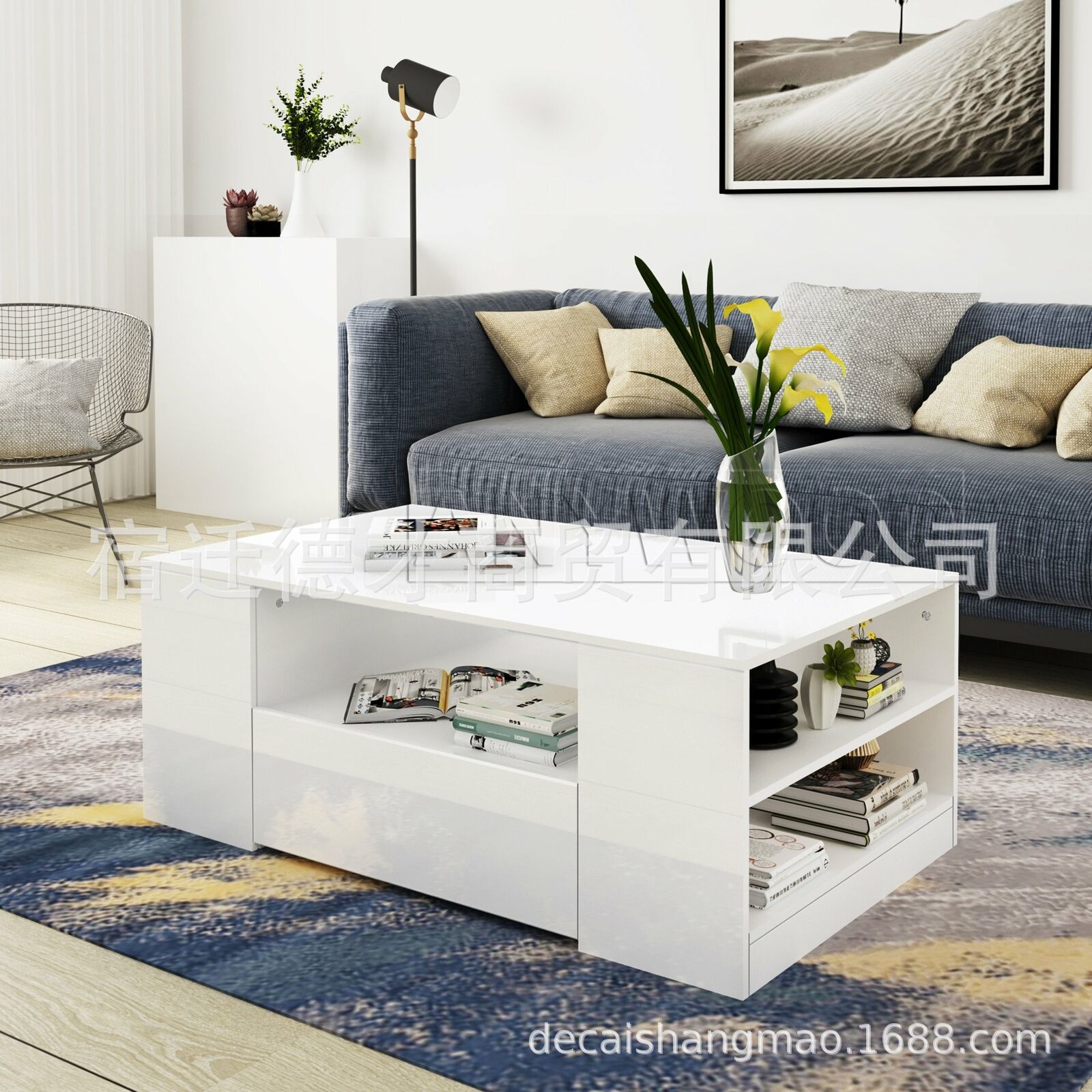 Modern White High Gloss Square Coffee Coffee Table Solid with 2 Storage Drawers High Glow LED Coffee Table