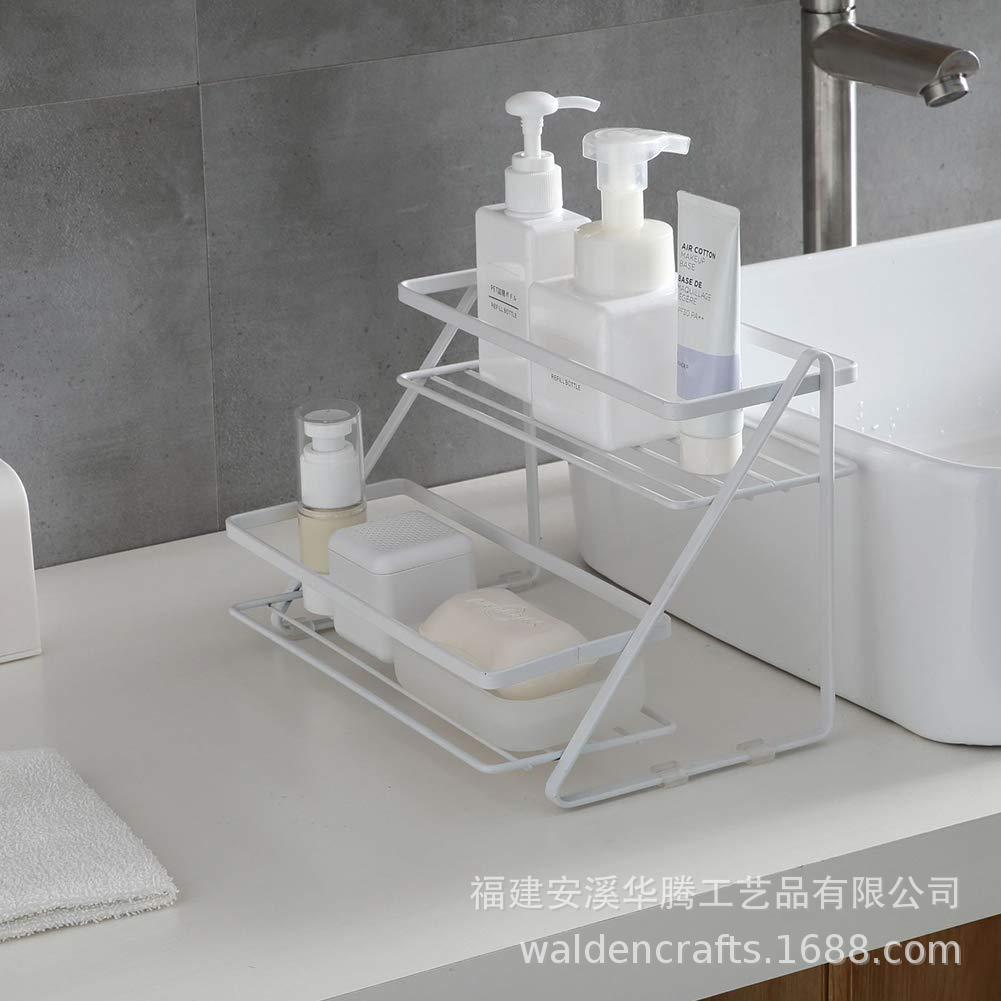 2 layers home kitchen wrought iron storage shelf manager kitchen bathroom storage rack