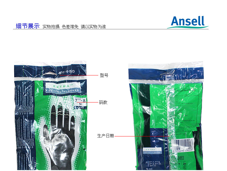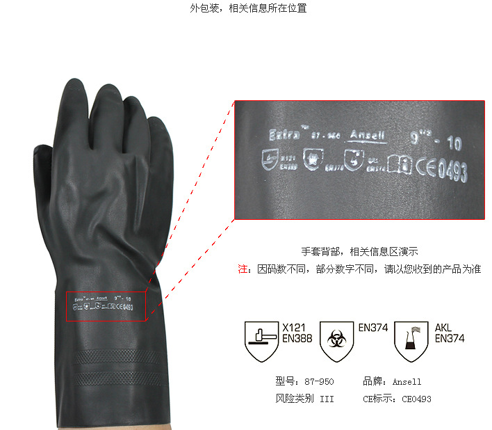 Ansell 87-950 rubber anti-chemical laboratory anti-acid-base household protective labor protection work gloves