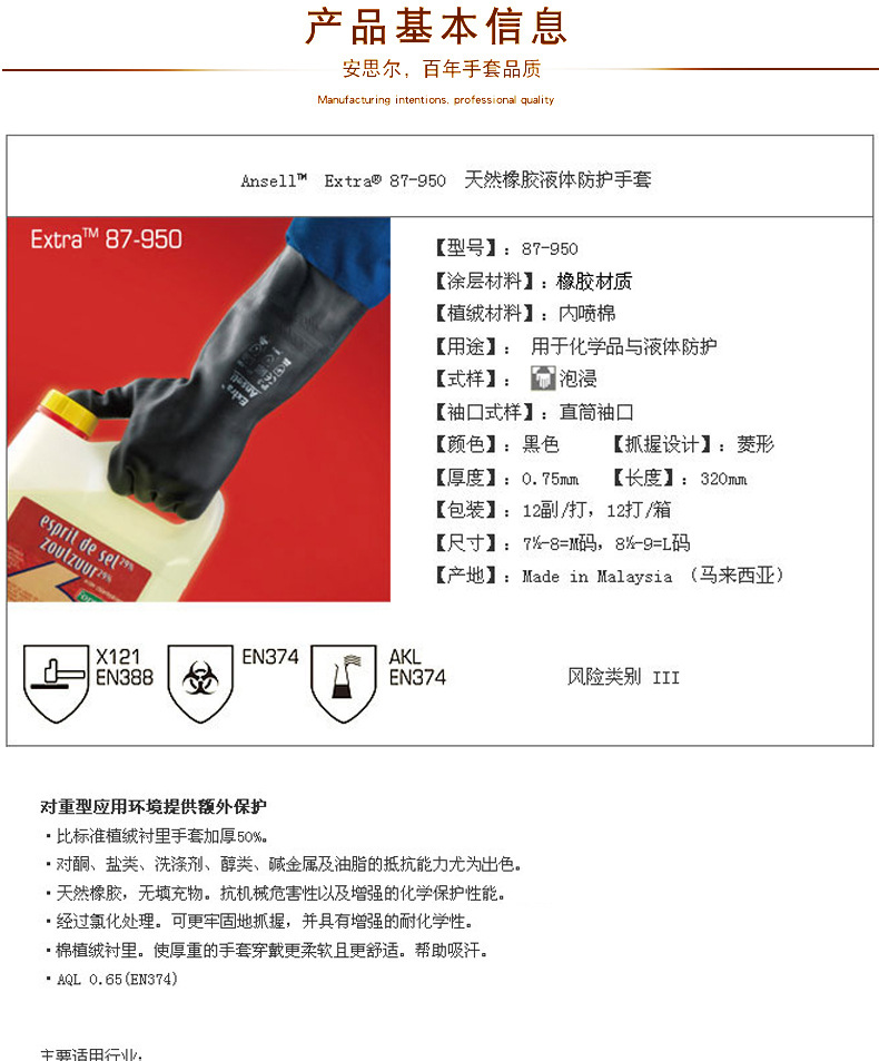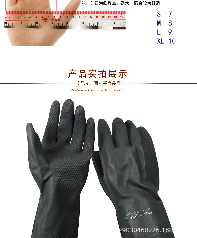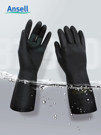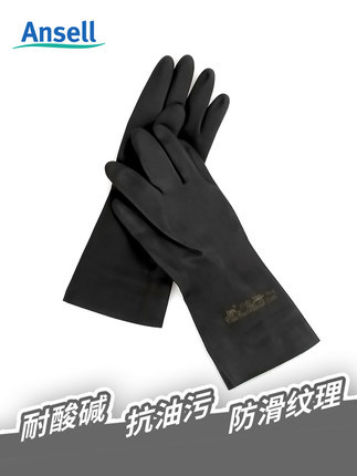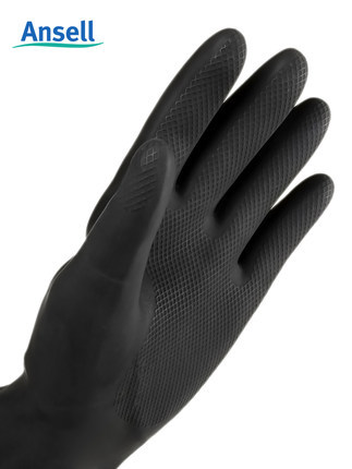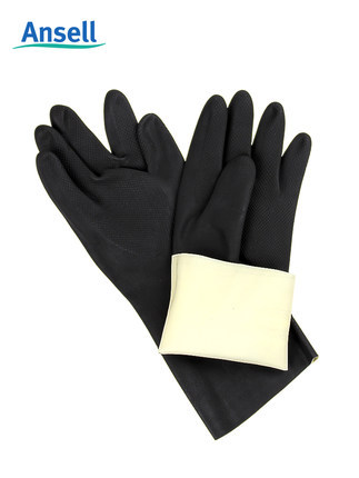 Ansell 87-950 rubber chemical resistant laboratory acid and alkali protective gloves