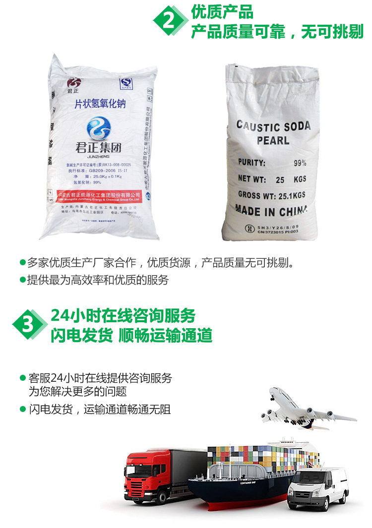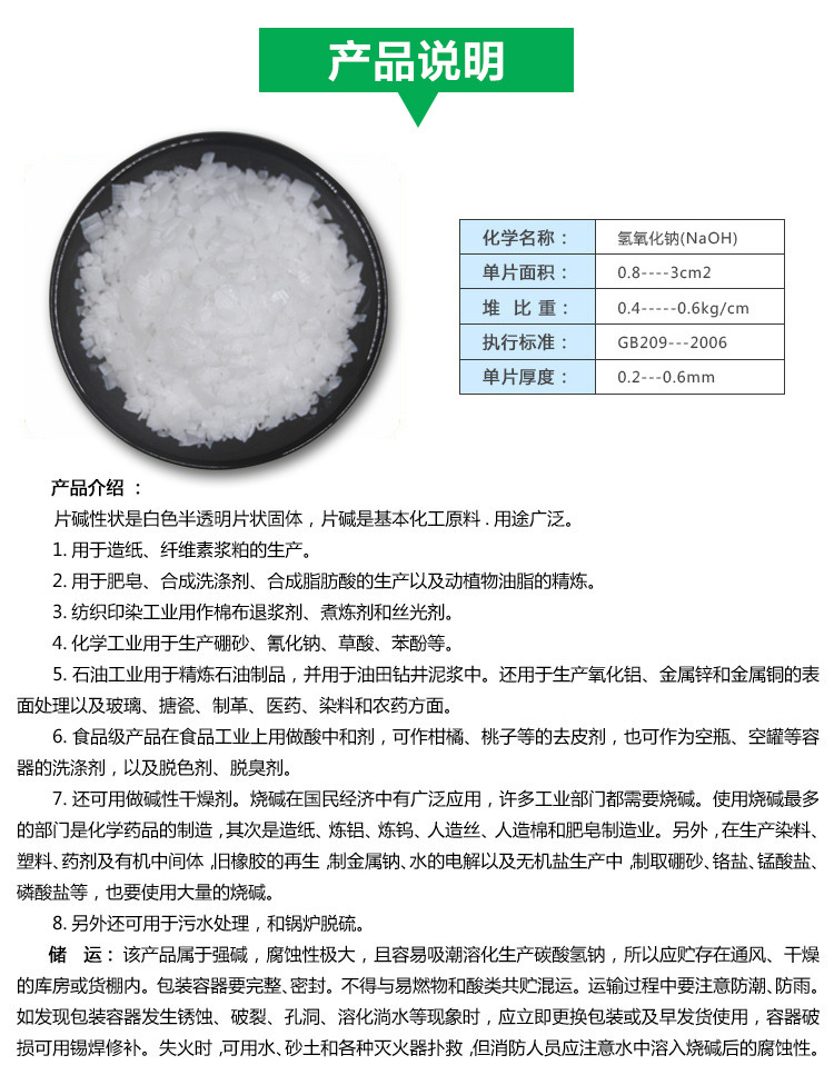 - Total alkali content (calculated as NaOH): 98.0- 103.5