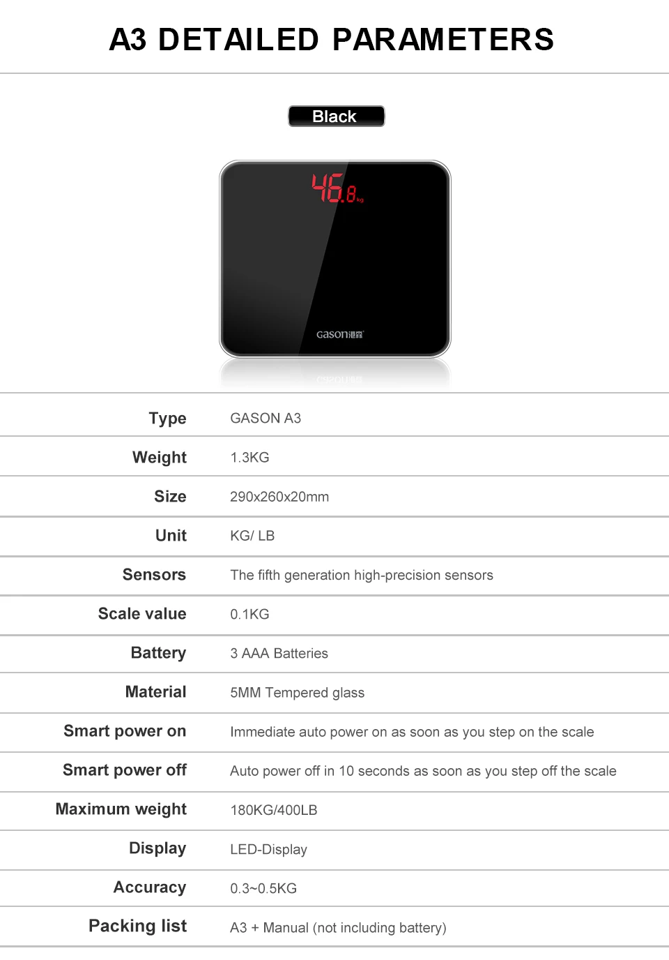 [source] Gangsen GASON A3 LED hidden screen electronic scales human scale health scales weight scale