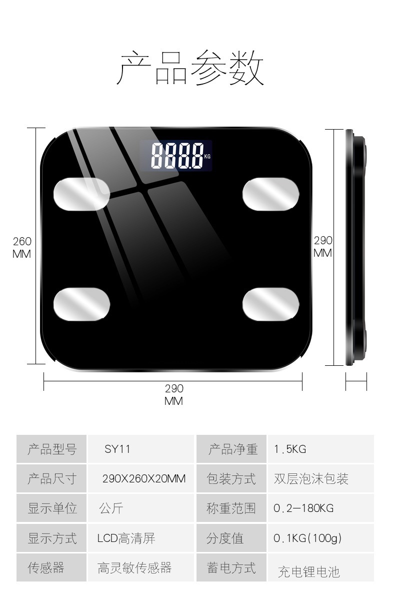 Factory direct home precision intelligent Bluetooth body fat scale human health electronic weight scale gift generation