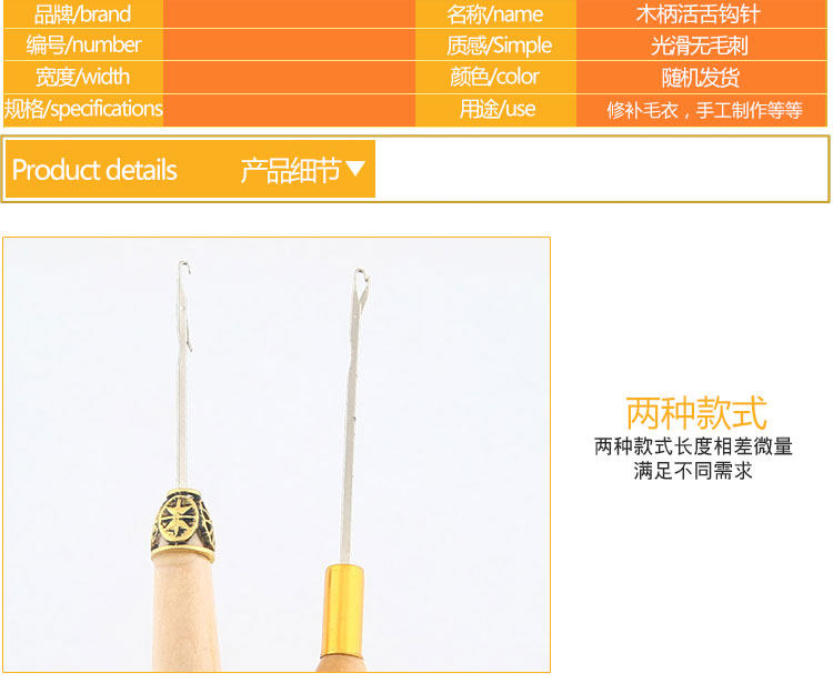 Crochet with wooden handle with tongue crochet sweater sweater crochet fine crochet knitting tool household with tongue crochet beaded
