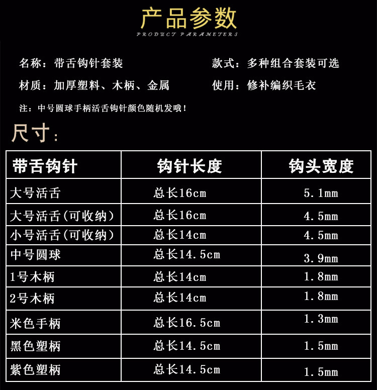 - Color: Medium ball crochet (3 packs), large Loose tongue crochet (3 sticks), beige handle crochet (3 sticks), medium ball crochet (5 sticks), large live tongue crochet (5 sticks), beige handle crochet (5 sticks), large No. + ball + beige (1 each), large + ball + beige + large storage (1 each), 1 large + 2 medium ball crochet hooks, 1 large + 2 beige handles , 1 medium ball + 2 beige handles, 2 medium balls + 1 beige handle, No. 1 wooden handle crochet (2 pieces), No. 2 wooden handle crochet (2 pieces), large storage Crochet (2 packs), small storage crochet (2 packs), beige handle crochet 1 pack