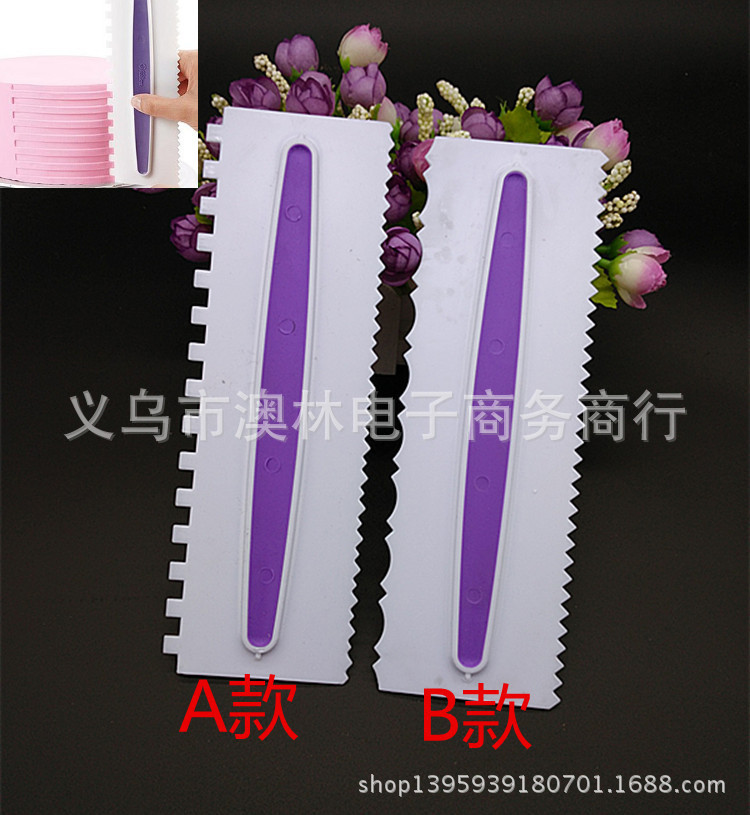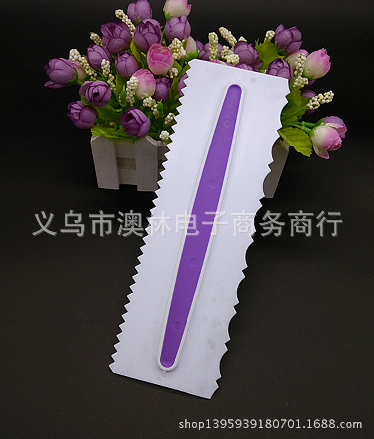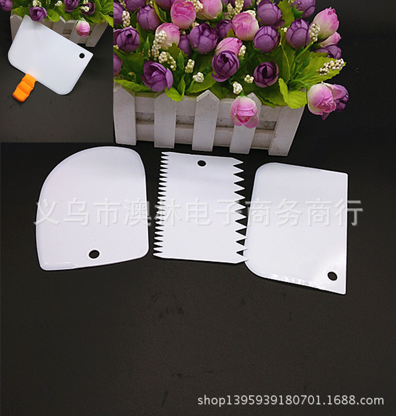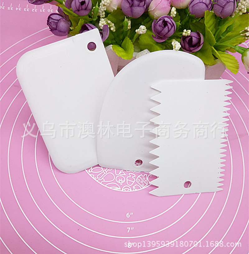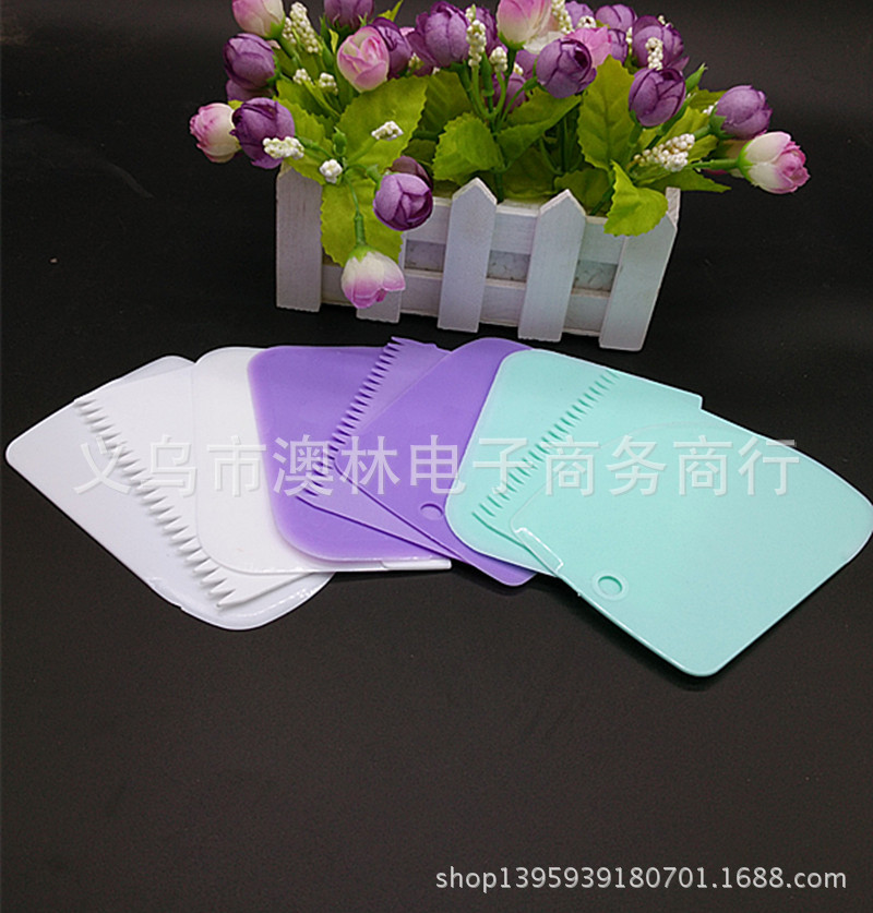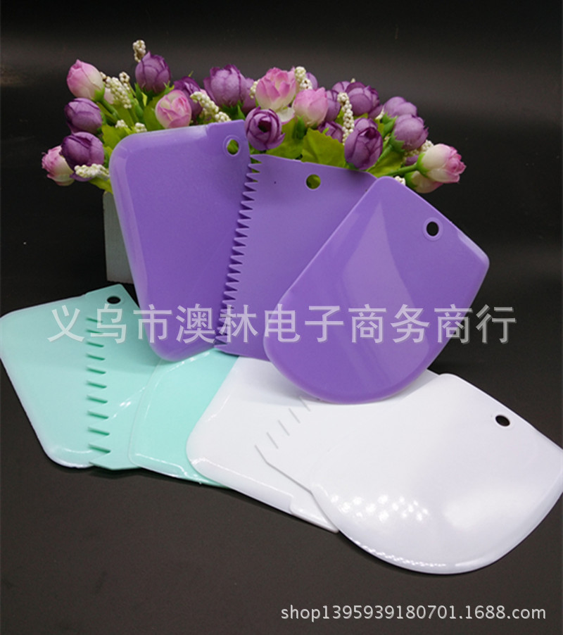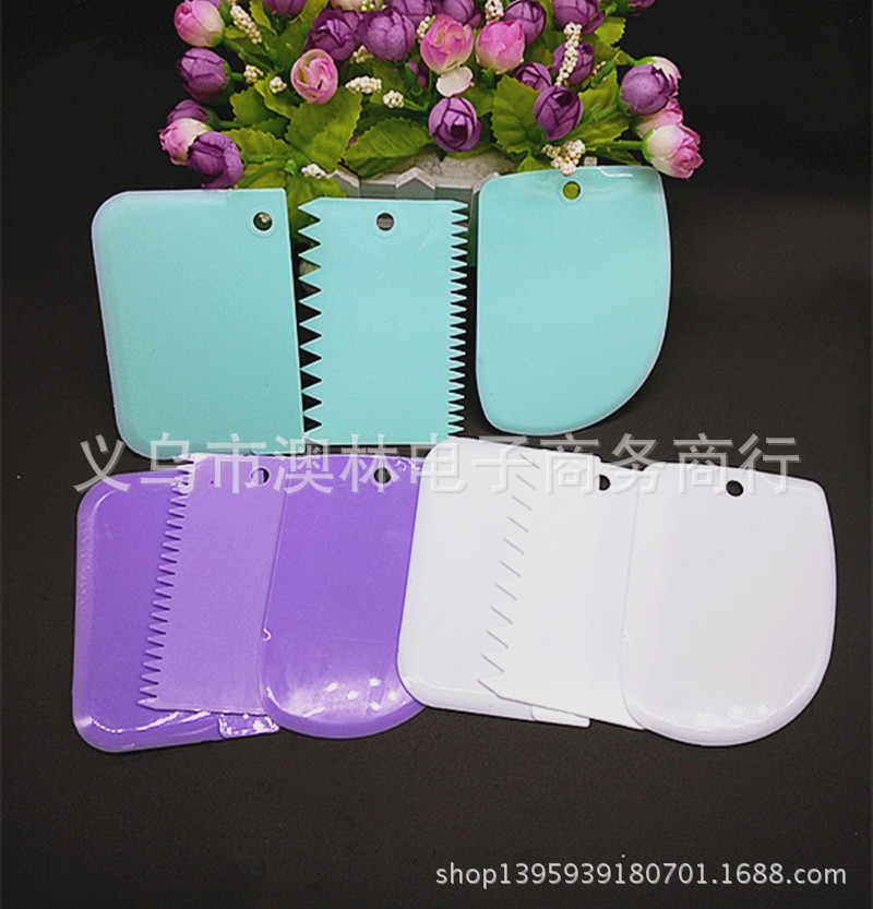 Color 3-piece plastic cream scraper set Straight-edge curved tooth and dual-use Kitchen baking gadget