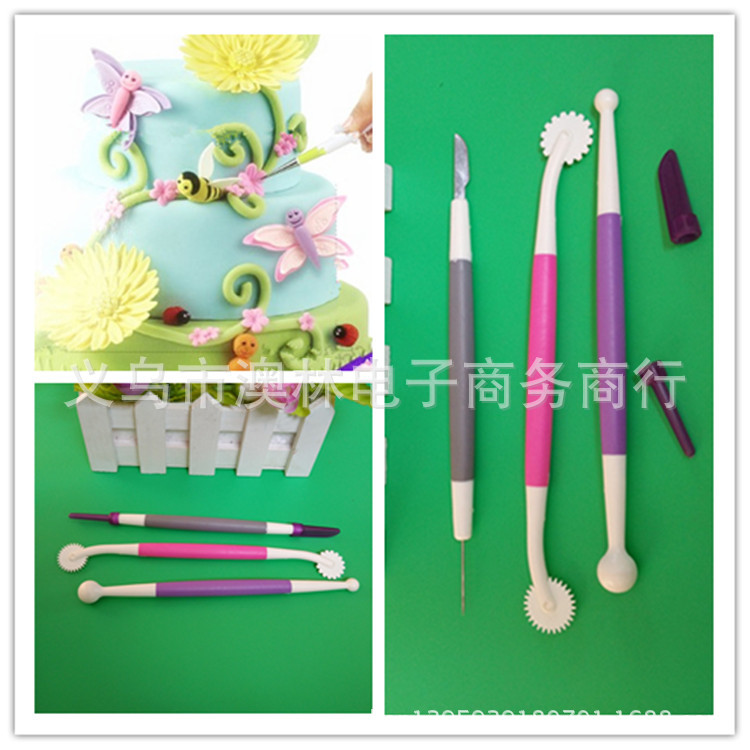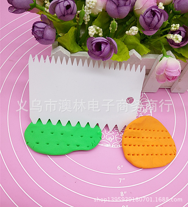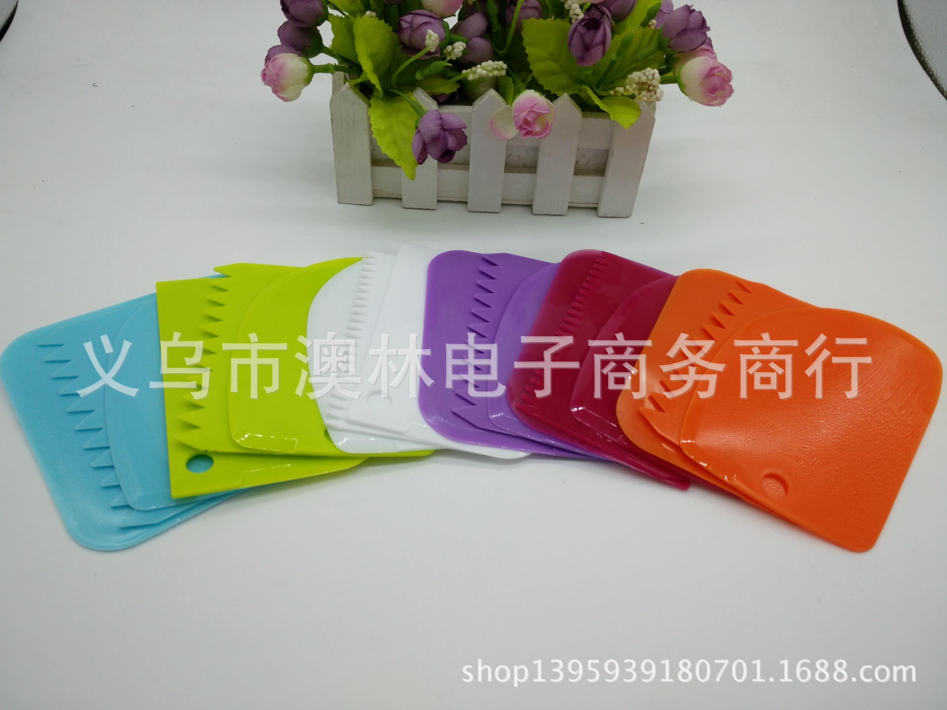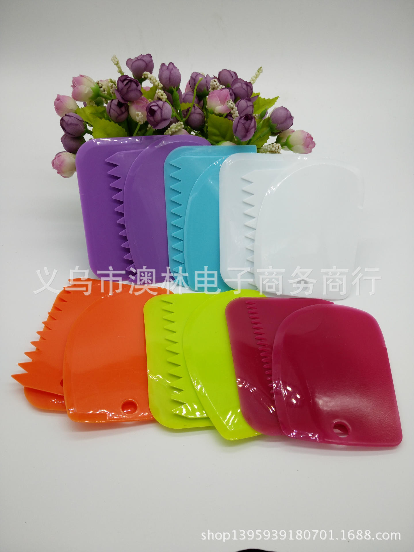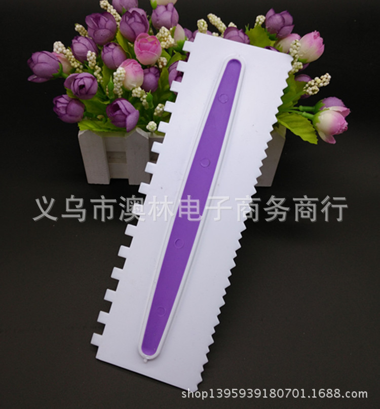 Color 3-piece plastic cream scraper set Straight-edge curved tooth and dual-use Kitchen baking gadget