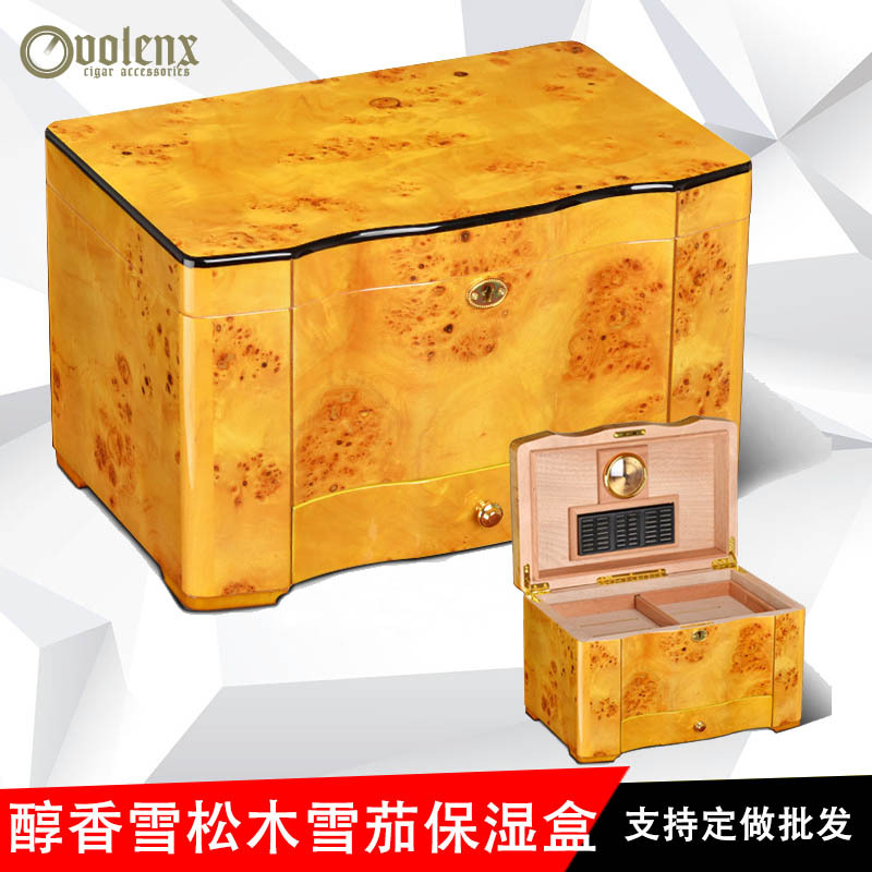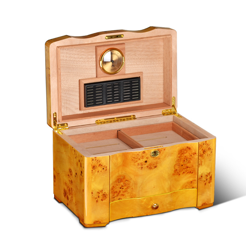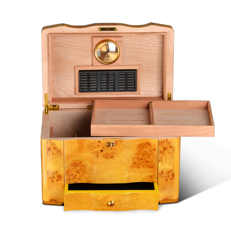 Factory wholesale Cedar wood double tray drawer large capacity cigar humidor yellow WLH-0073