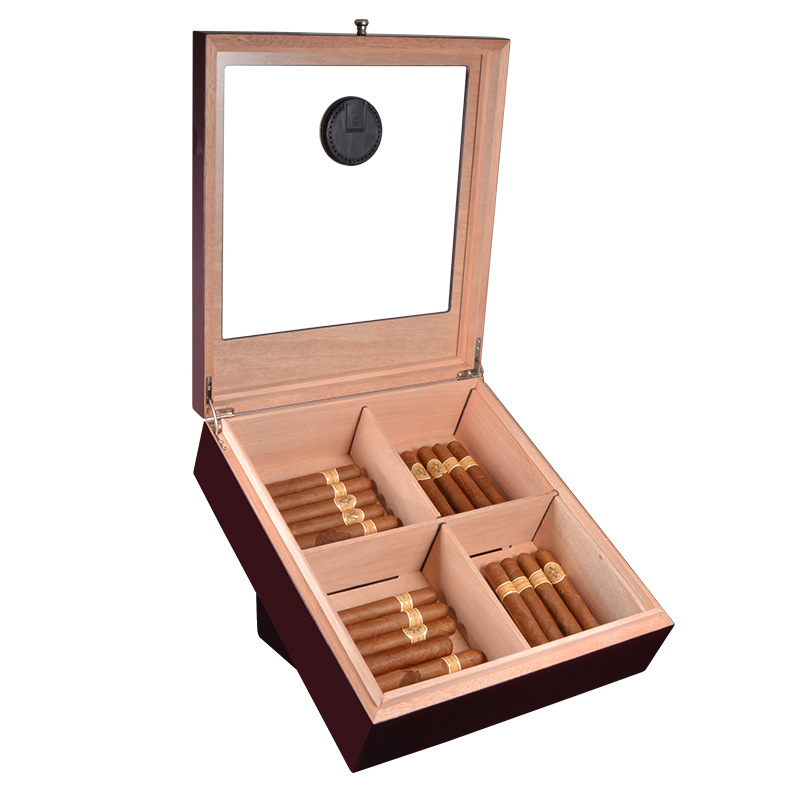 Specialized cigar humidor creative transparent glass top Spanish cedar wood display box storage cabinet customization