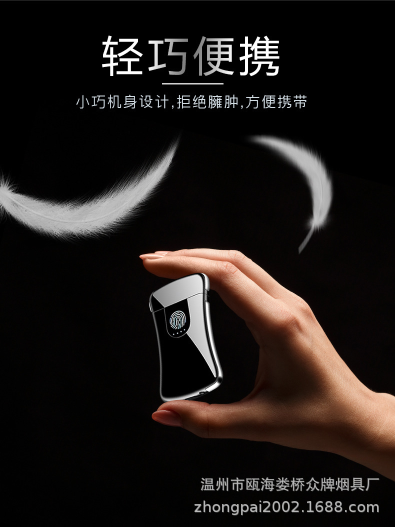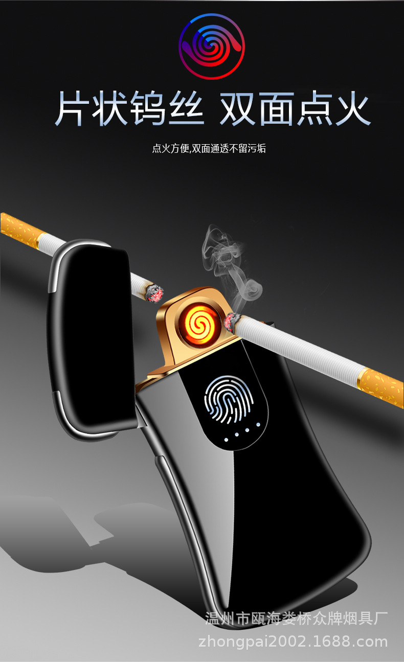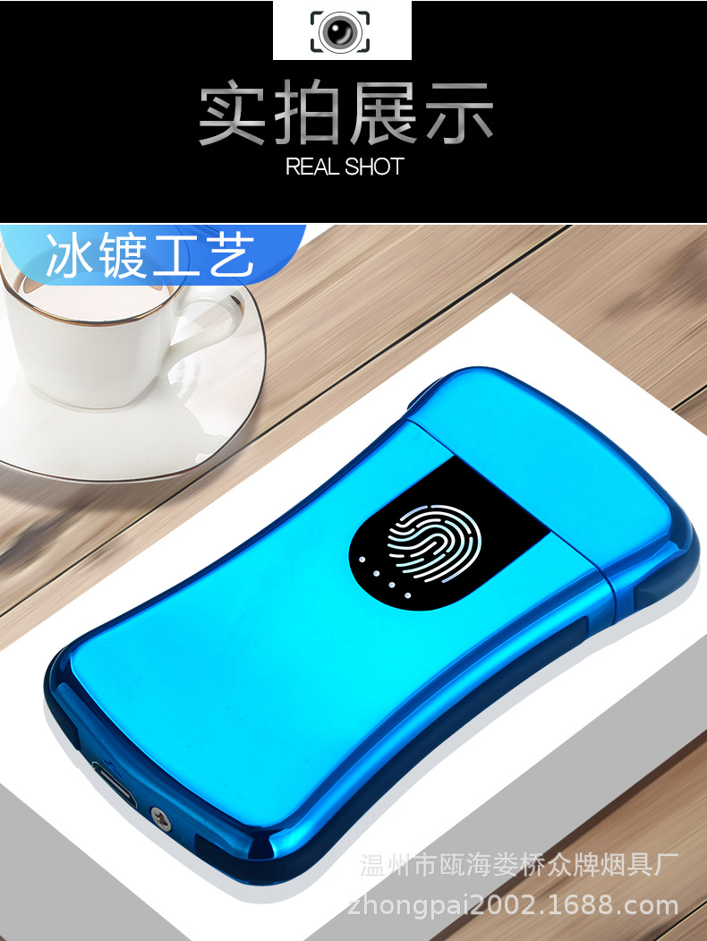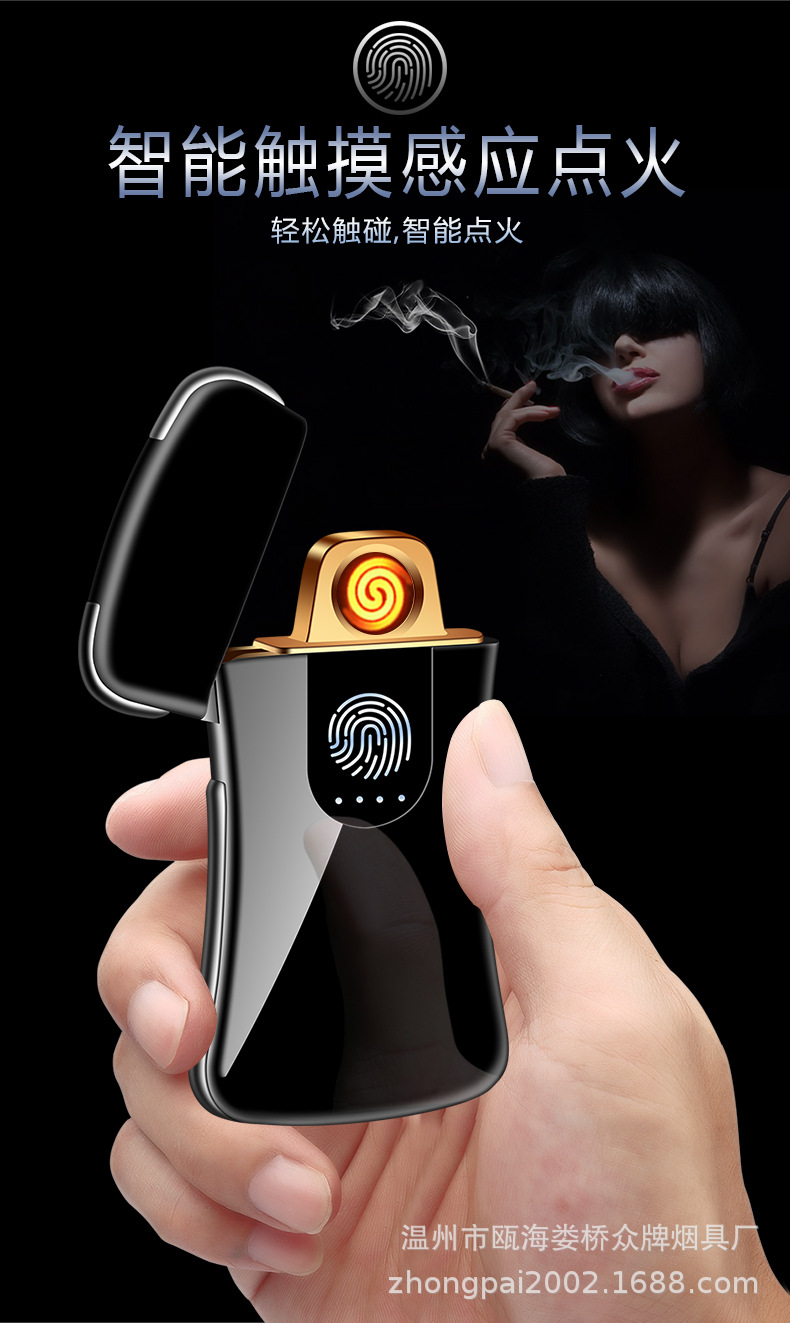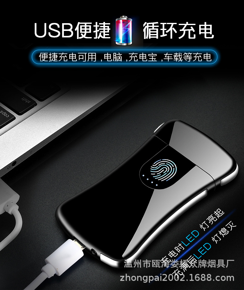 Creative personality fingerprint touch usb charging lighter metal windproof cigarette lighter men’s custom
