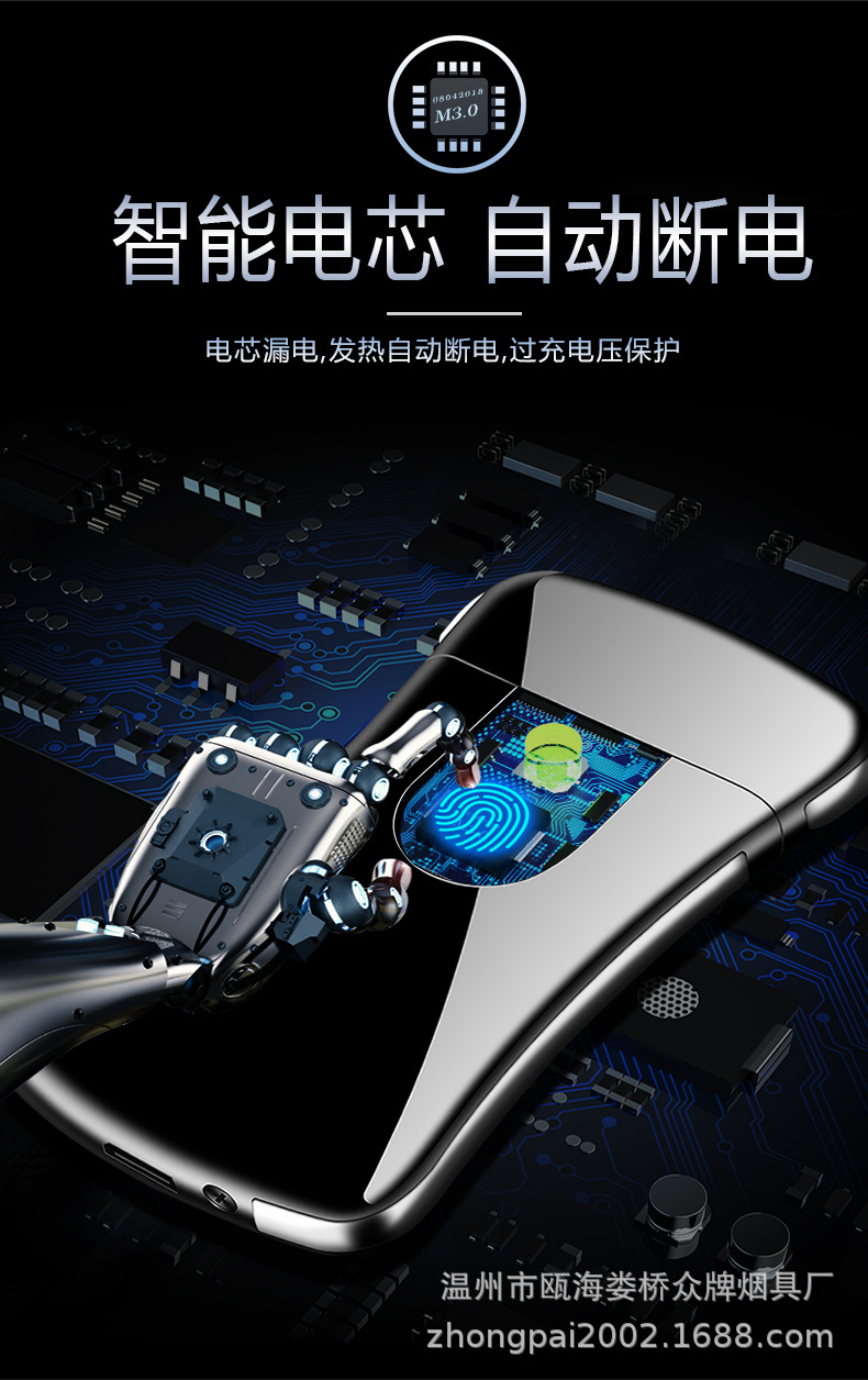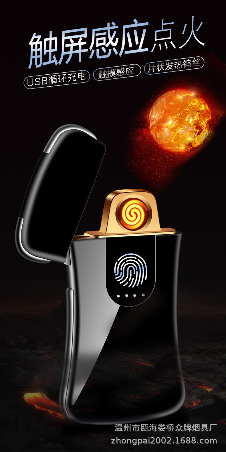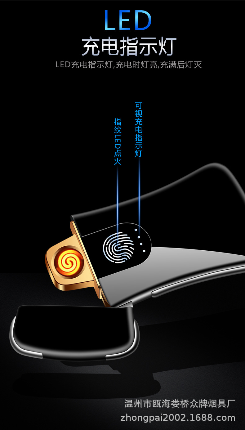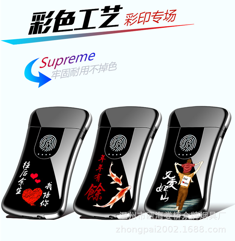Creative personality fingerprint touch usb charging lighter metal windproof cigarette lighter men’s custom