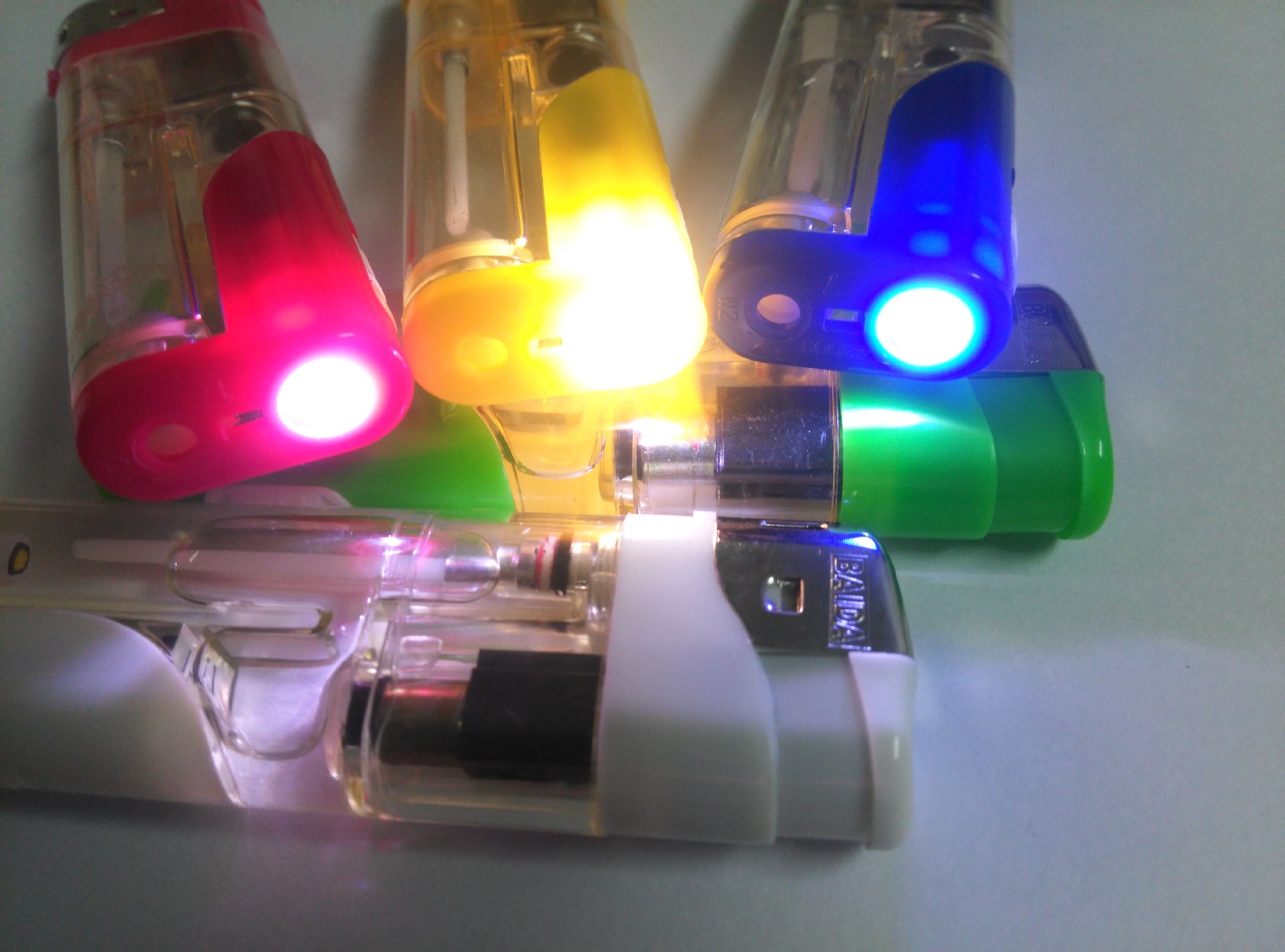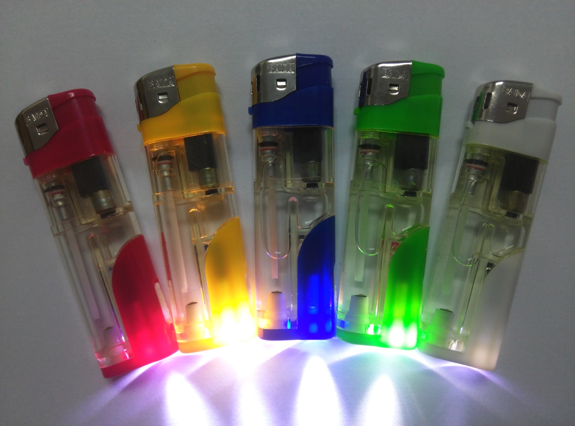 Factory direct one-time inflatable plastic gas lighter big double round with LED lights custom