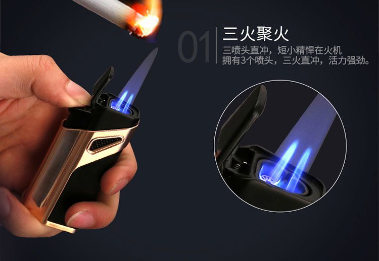 Genuine Zhongbang three straight cigar lighter Zhongbang 981 windproof gift lighter wholesale