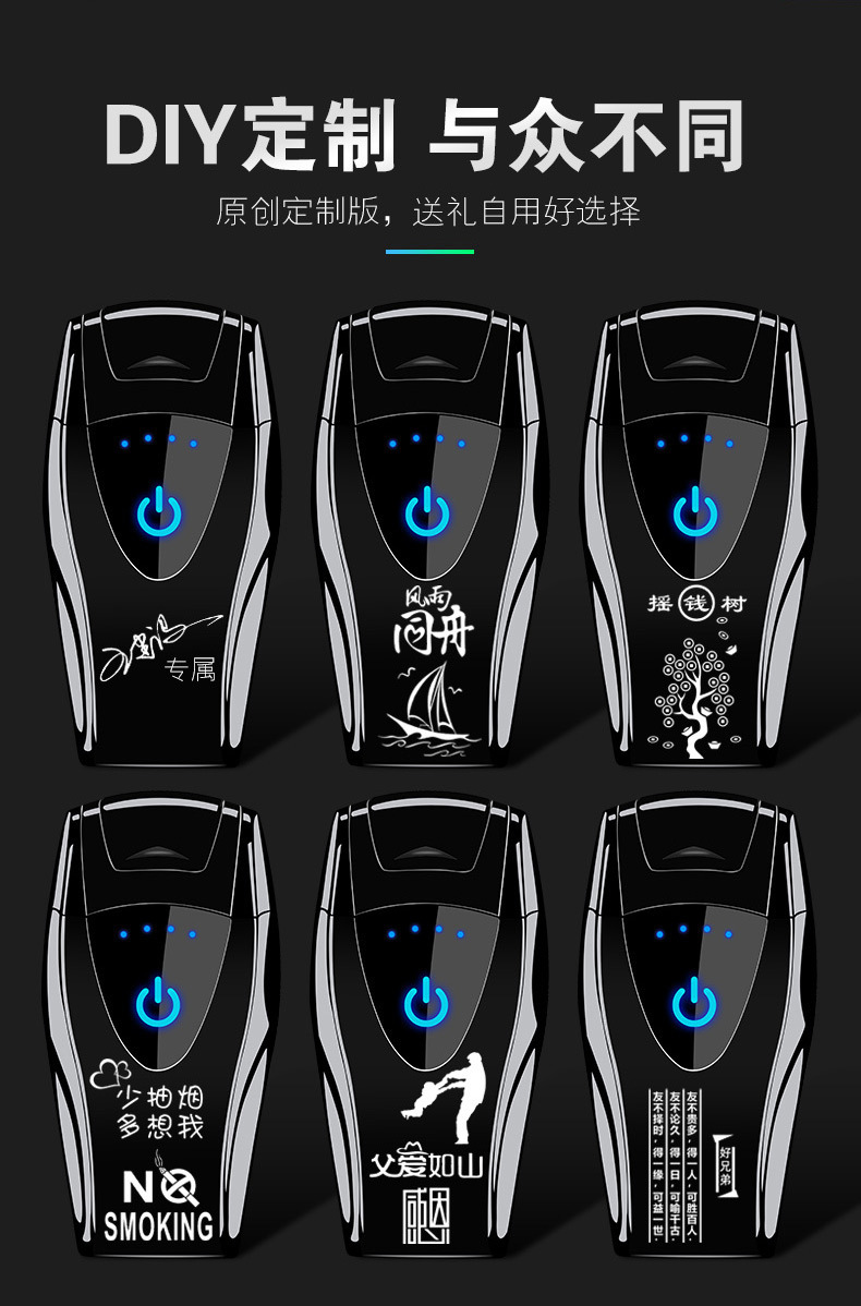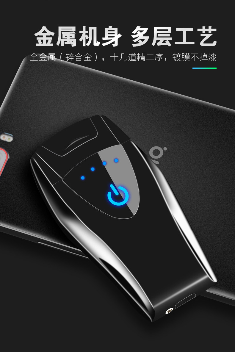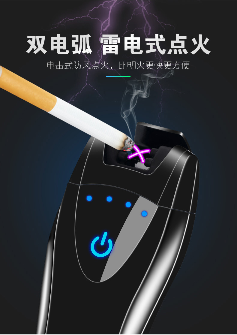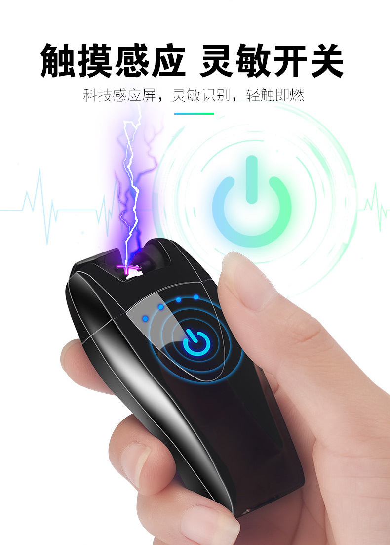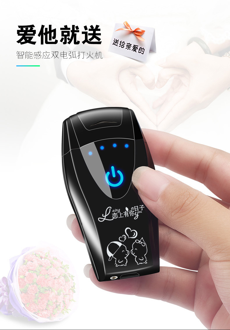 HB151 touch sensor with power display dual arc USB charging lighter can be customized