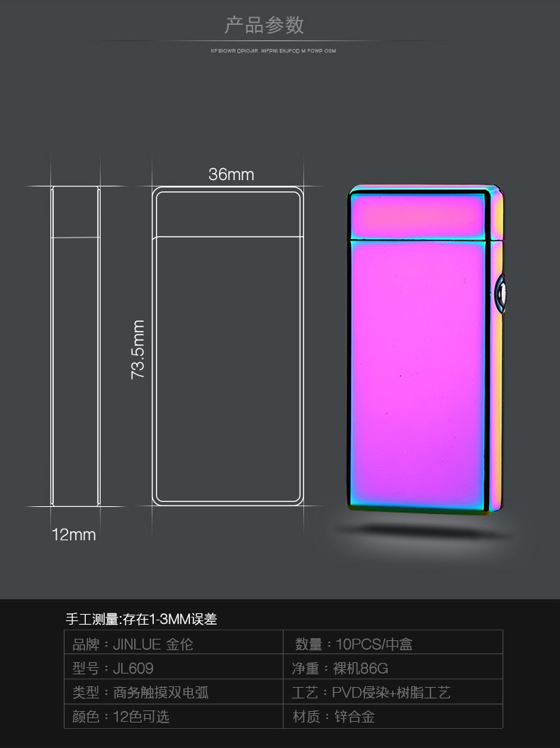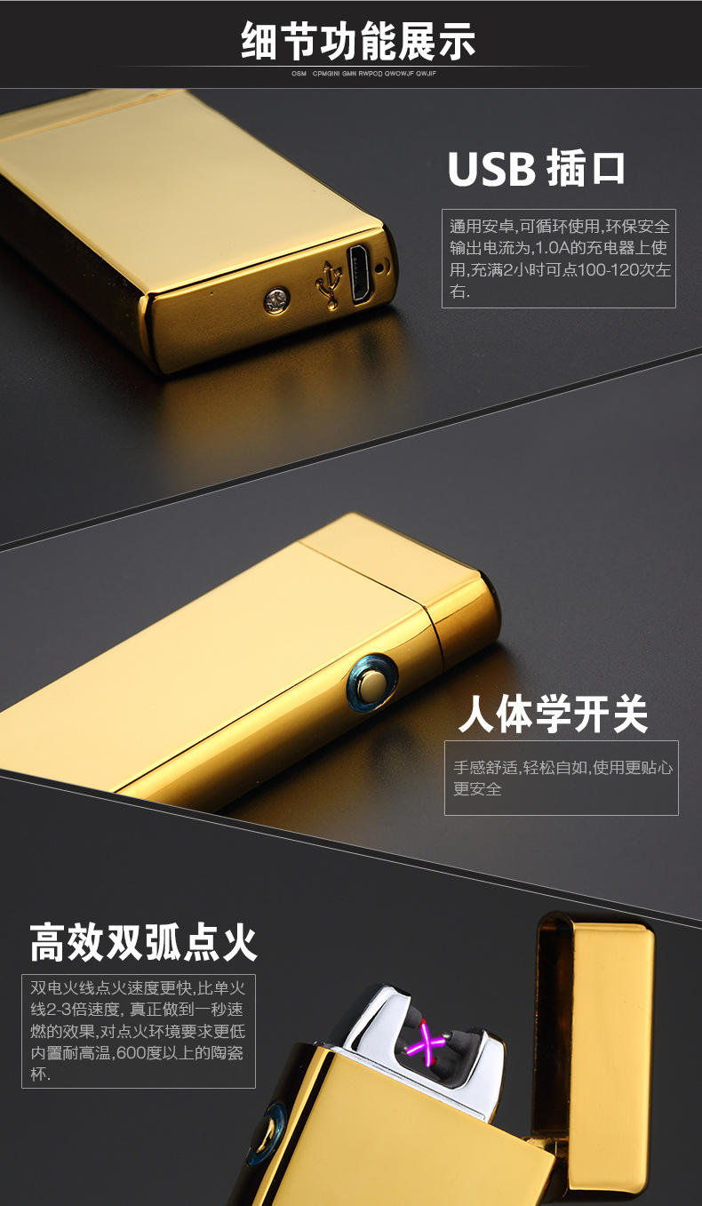 Touch double arc metal Creative USB charging lighter Personality boutique electronic cigarette lighter quality