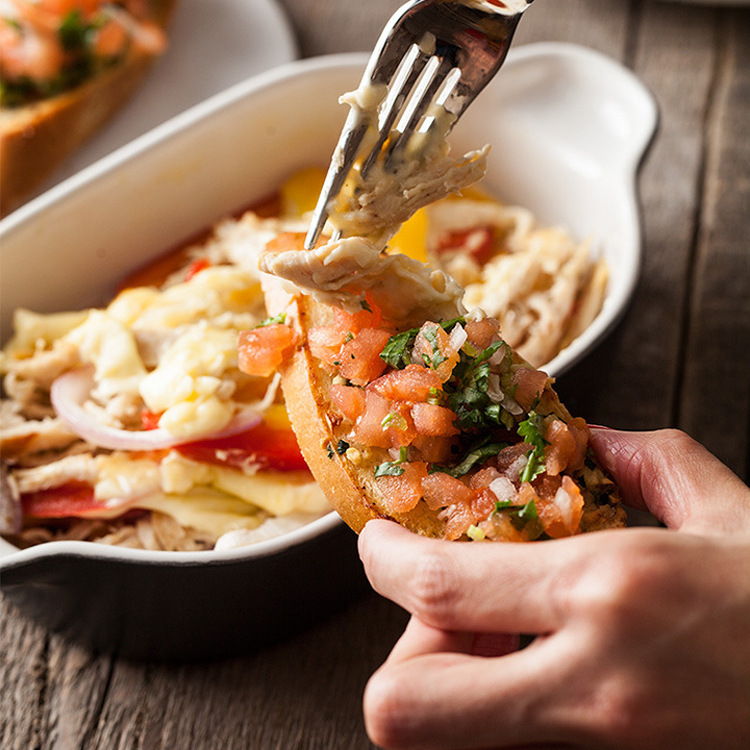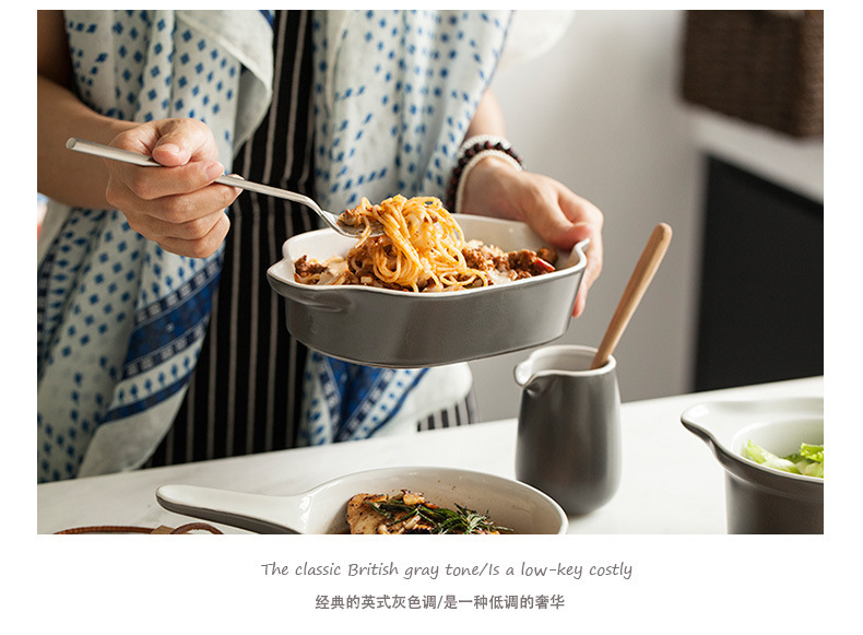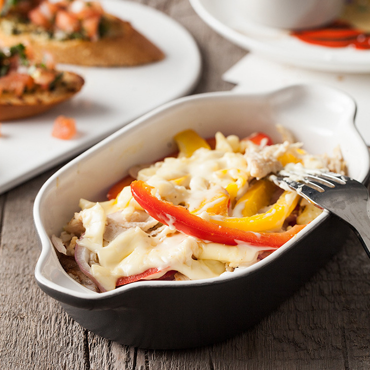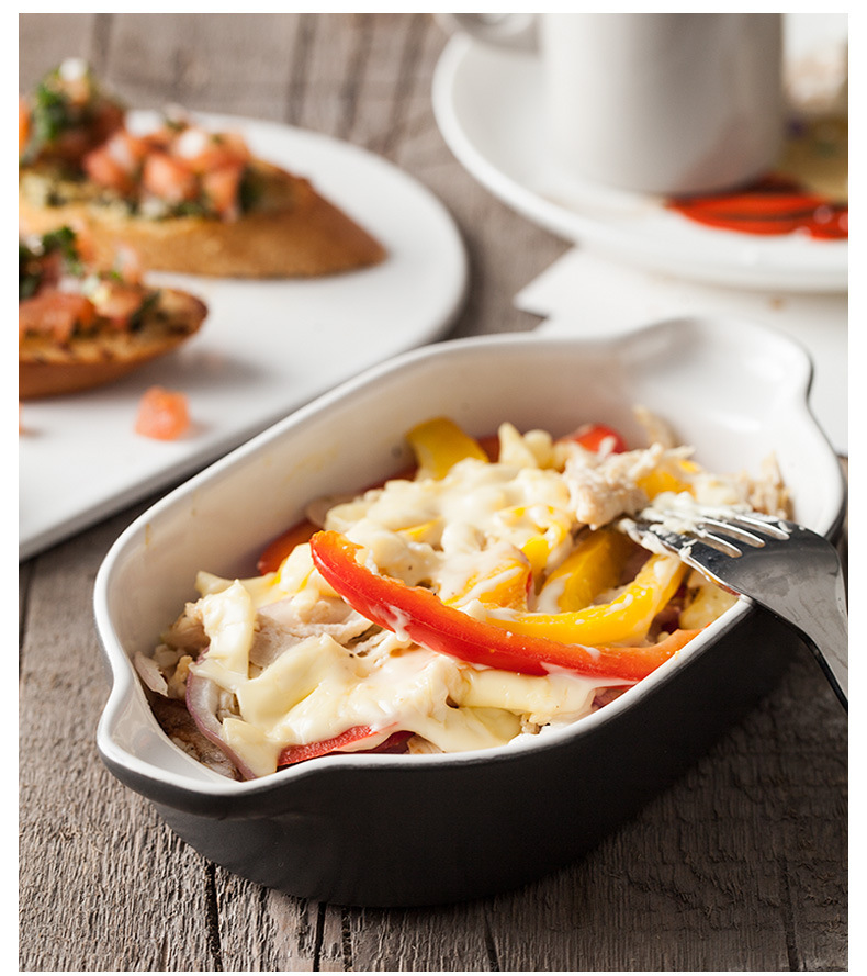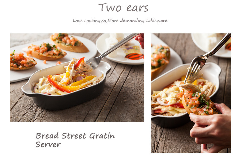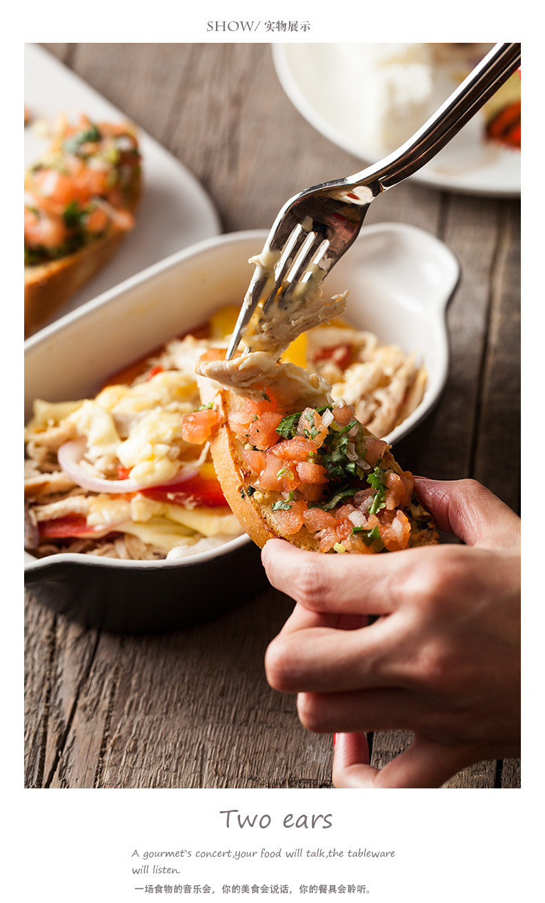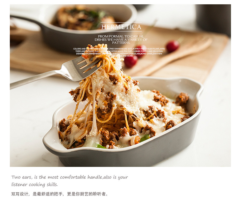 Japanese style risotto dish baking binaural baking tray hotel ceramic tableware Western dish custom LOGO
