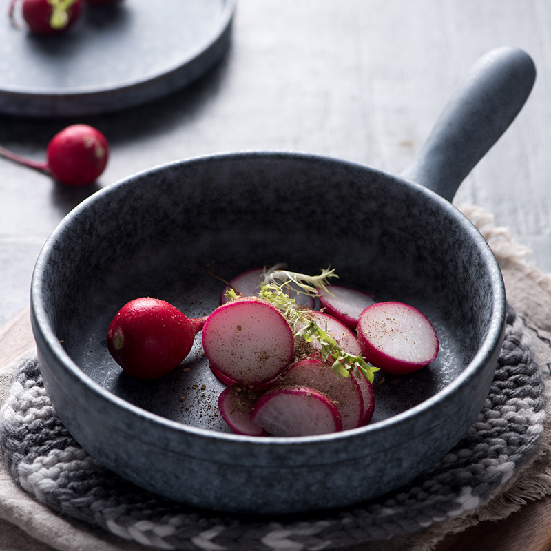 Micron burning creative fashion hotel ceramic tableware pizza baking dish dish handle pot Western dish ceramic