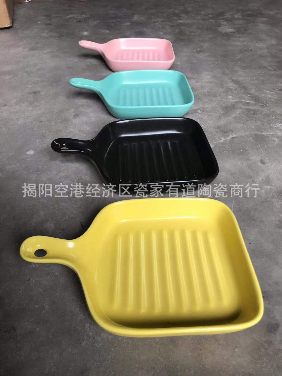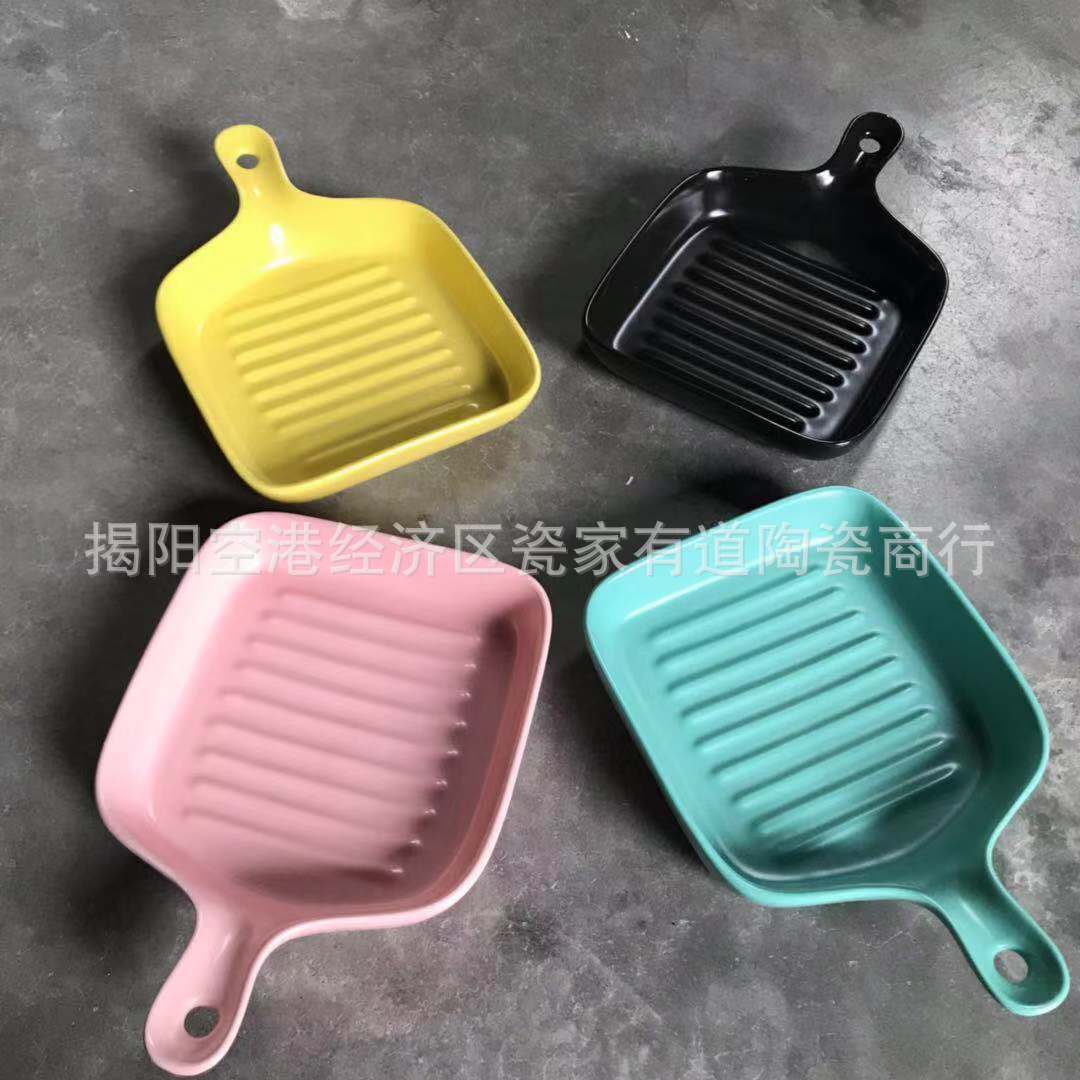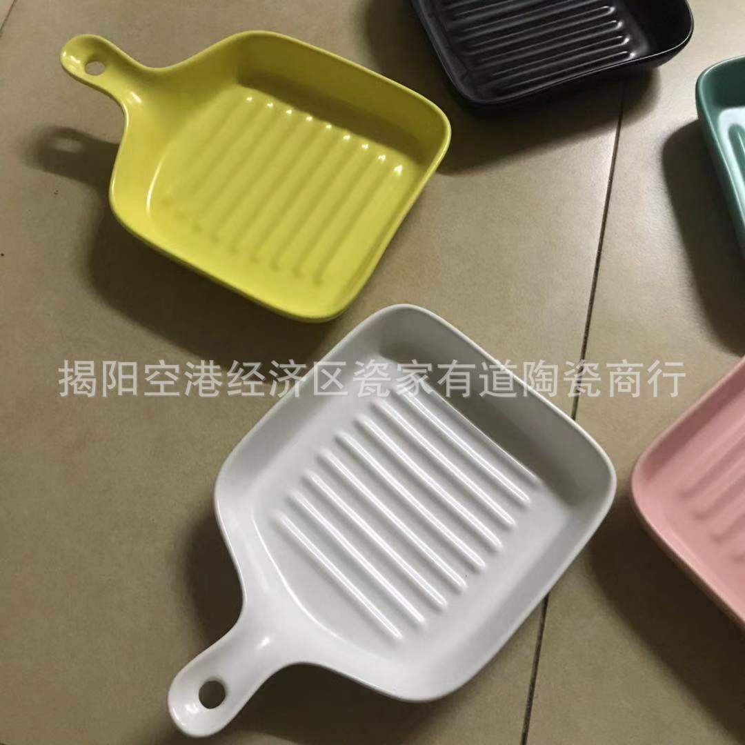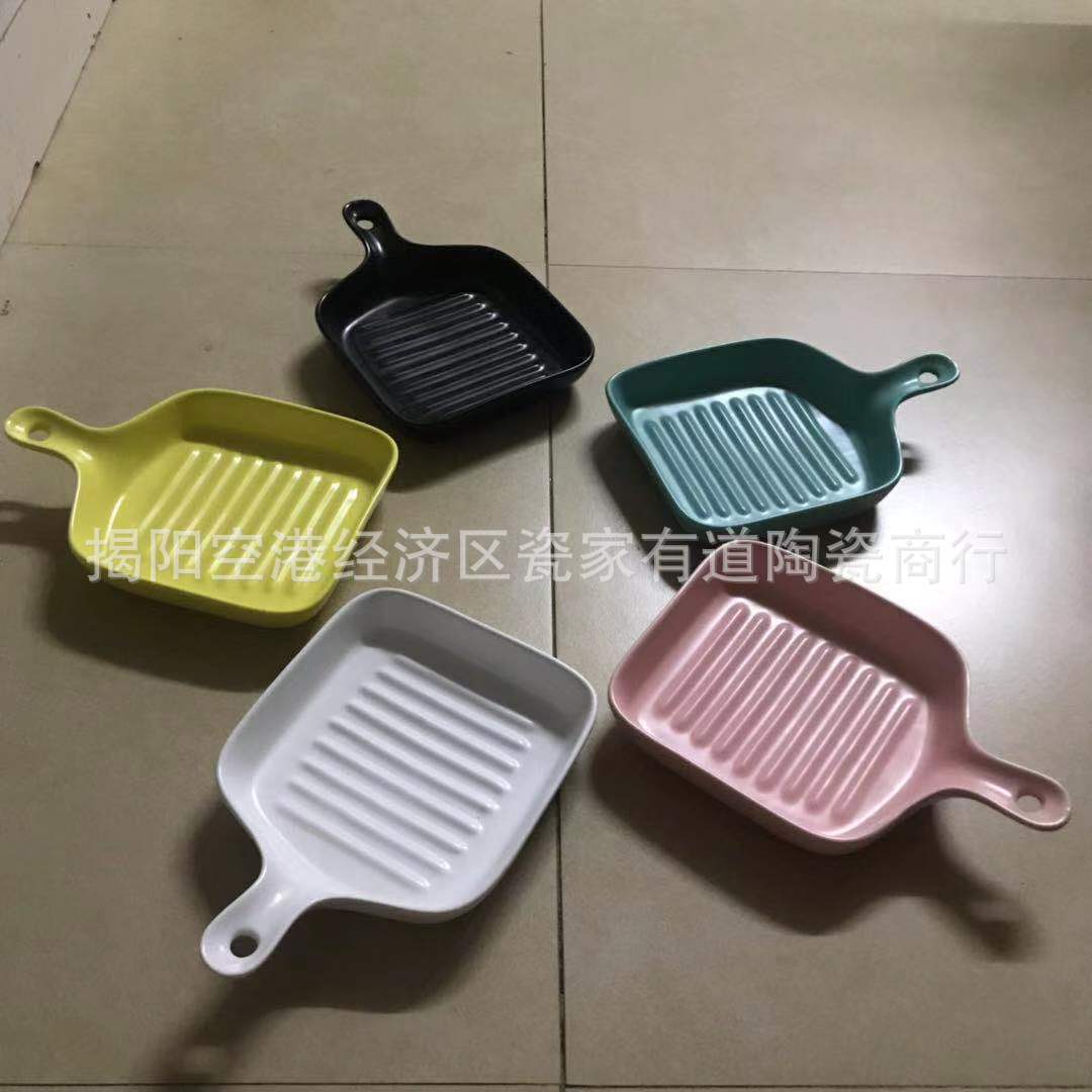 Nordic matte square baking risotto dish ceramic single handle baking tray bread tray frosted glaze baking tray