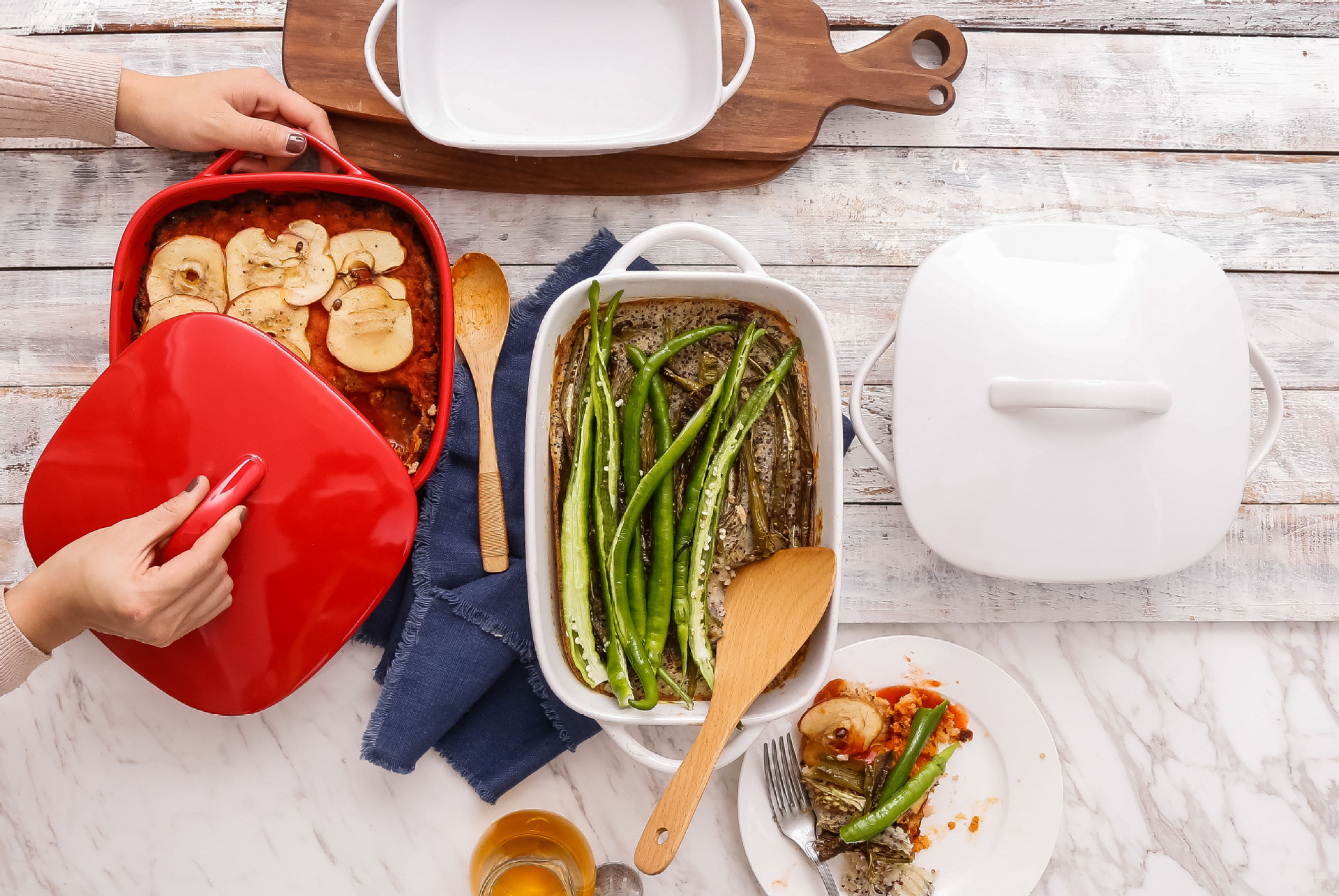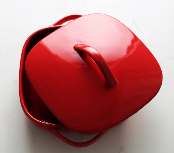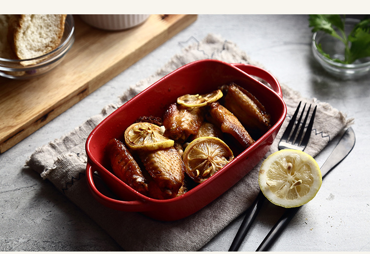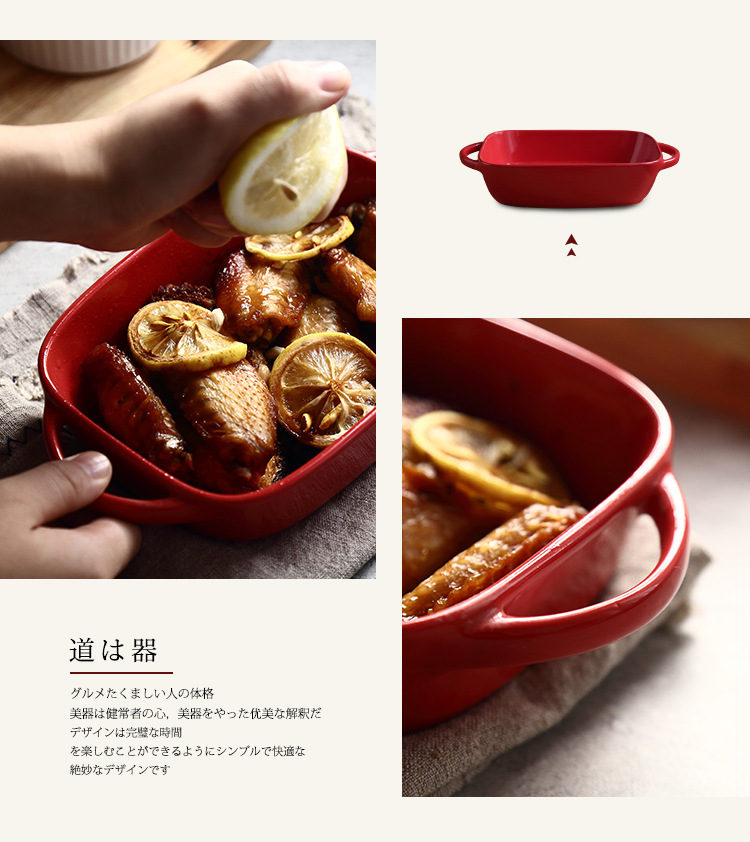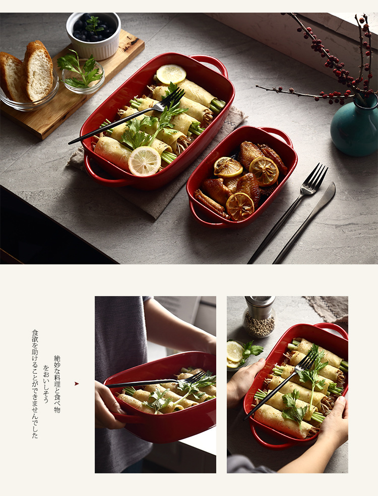 Red oval creative ceramic ears baking tray with lid fish plate soup plate high glutinous rice positive rectangular cheese cake plate