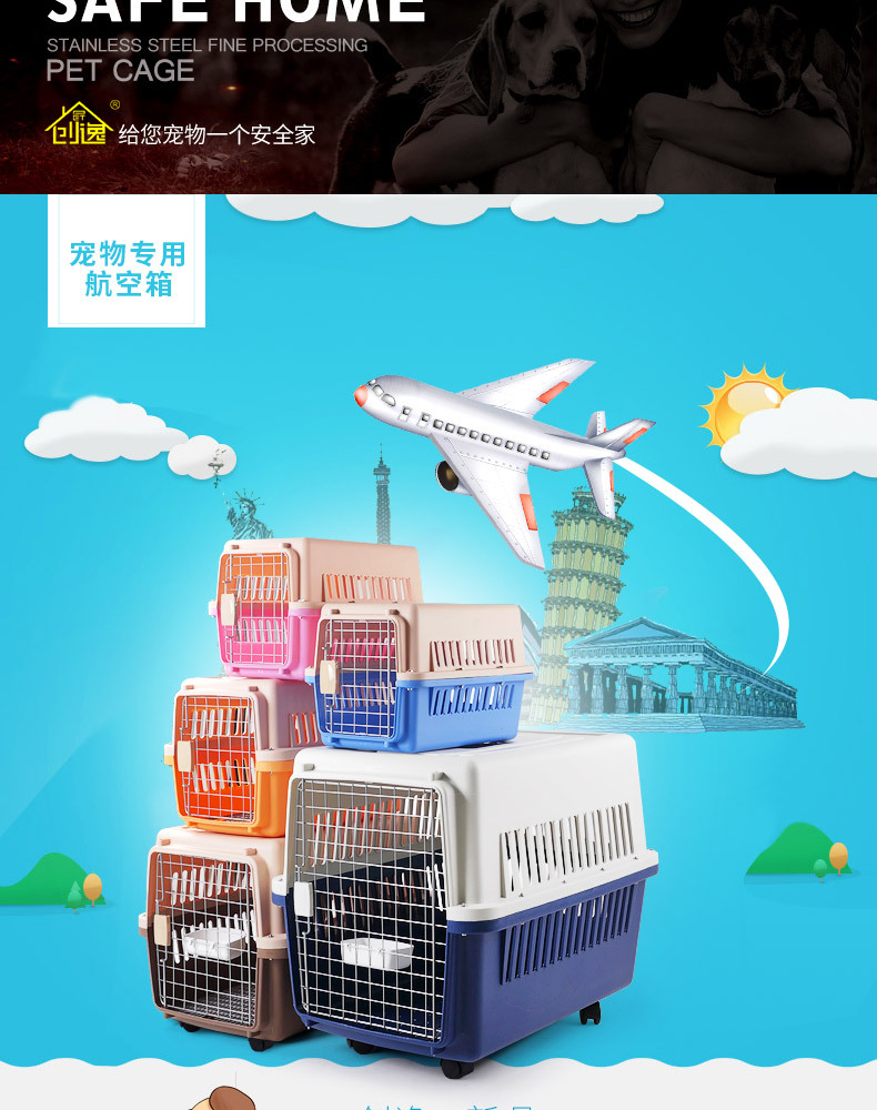 Factory direct quality raw materials pet air box cat shipping box dog air cage multi-model multi-size