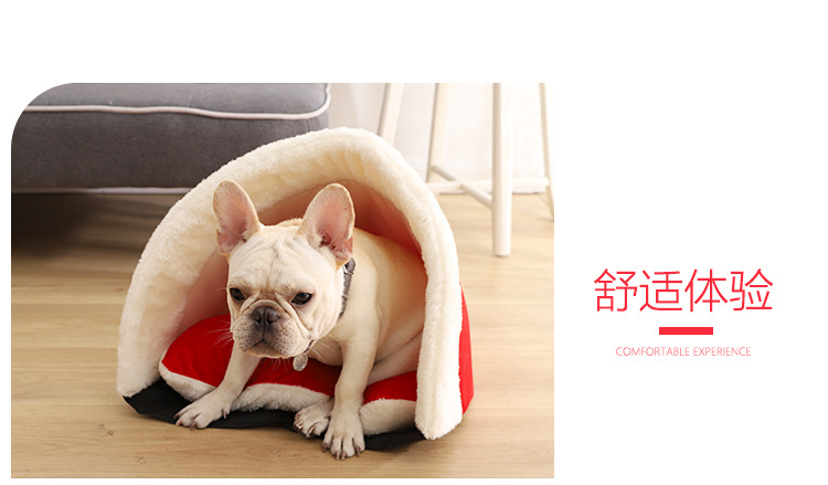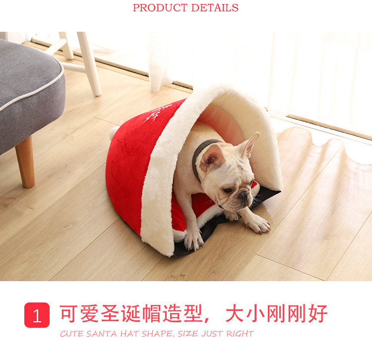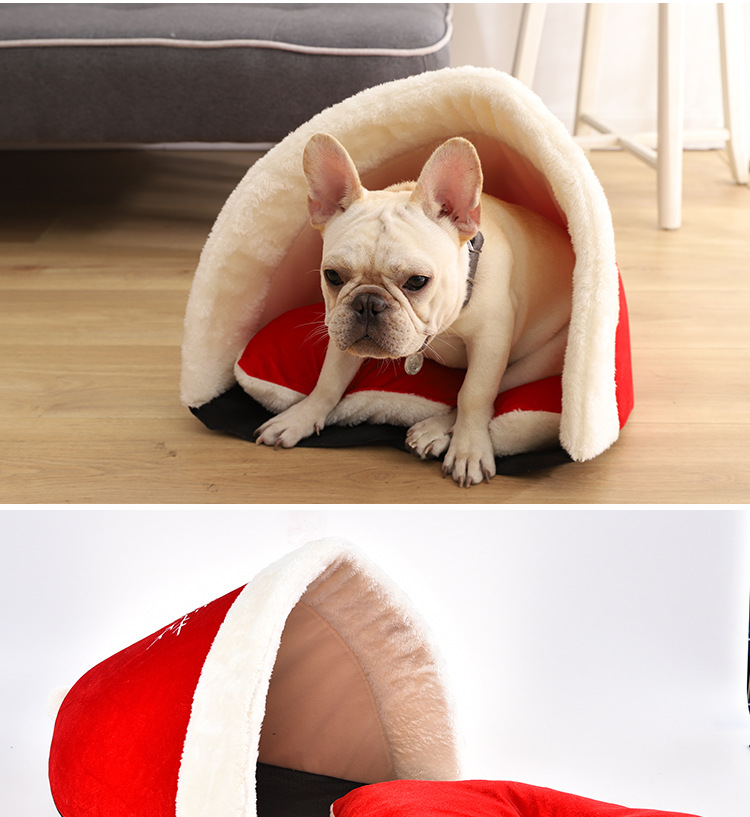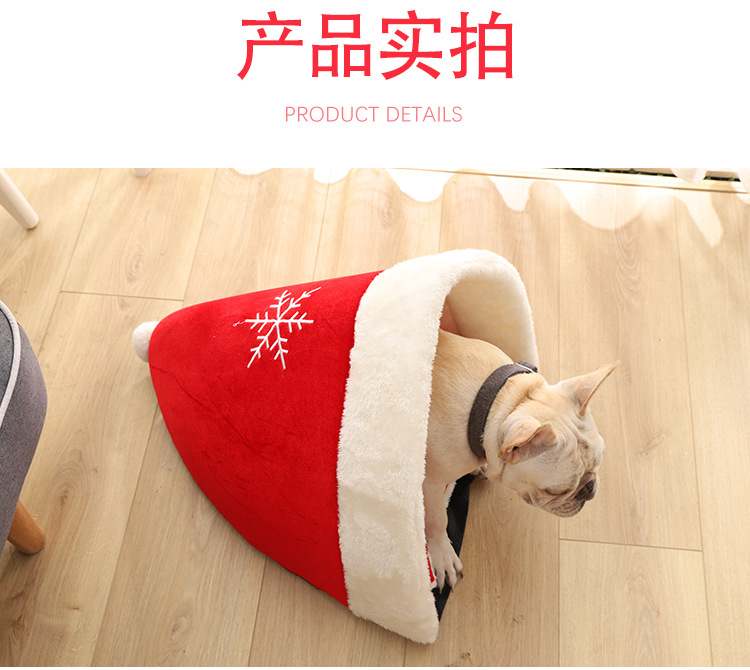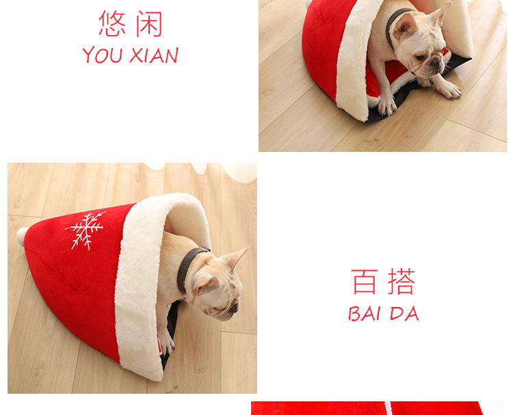 Yili favors Christmas series Christmas hat plush out pet nest Red thick warm pet pet cage