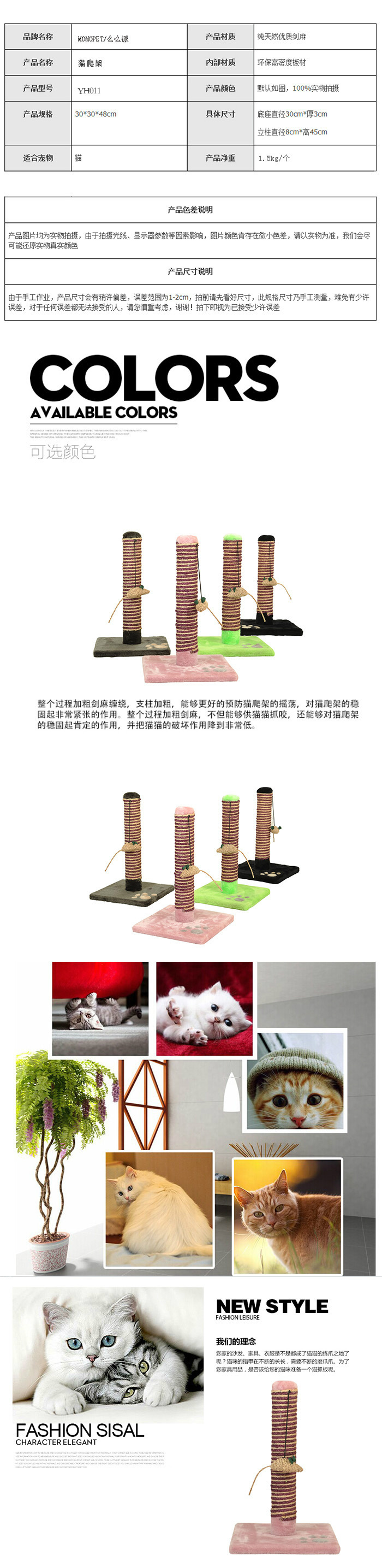 [MOMOPET] quality natural sisal fluffy ball clearance treatment pink blue two-color cat climbing frame