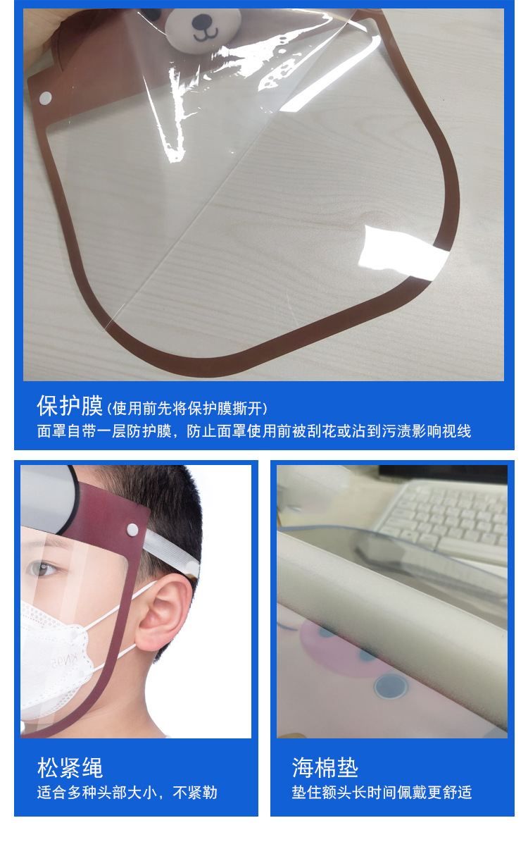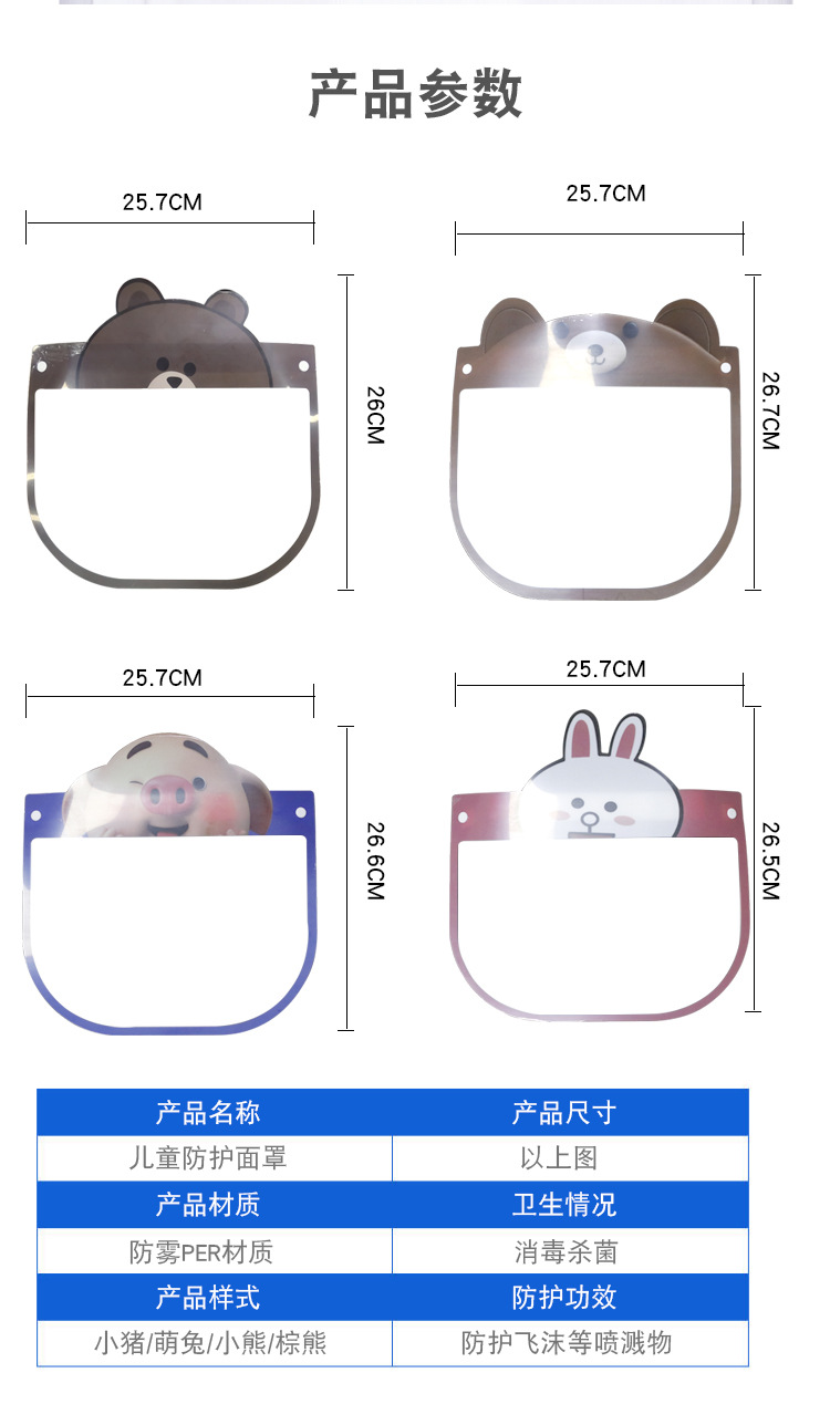 Anti-epidemic supplies child protective mask transparent anti-spray cartoon mask full face protection child mask