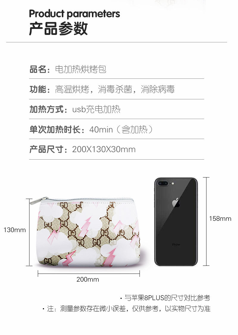 Anti-epidemic supplies electric heating sterilization bag handheld portable portable sterilization sterilization bag usb charging sterilization bag gift