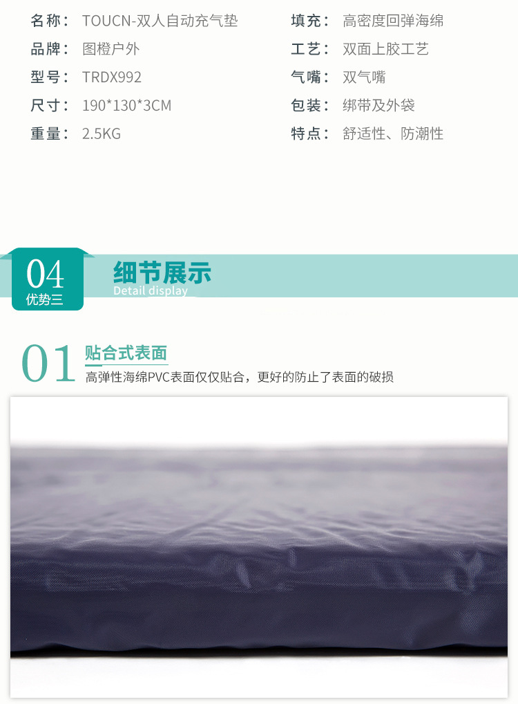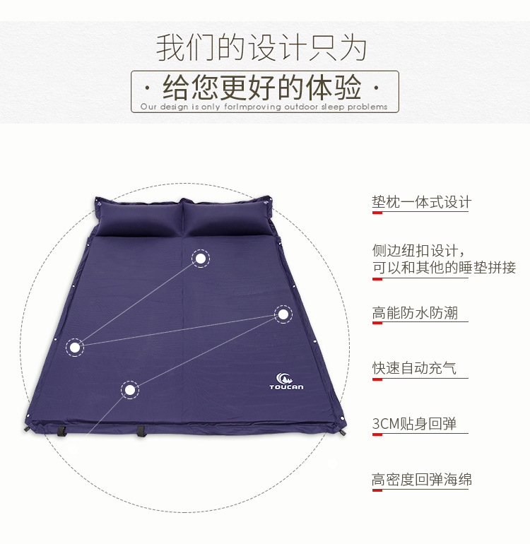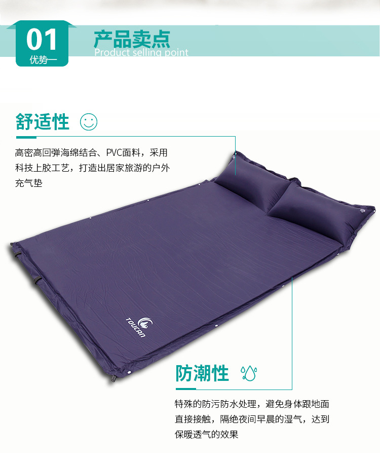Outdoor anti-epidemic automatic inflatable mattress with pillow can be spliced double inflatable cushion self-driving camping outdoor moisture-proof pad
