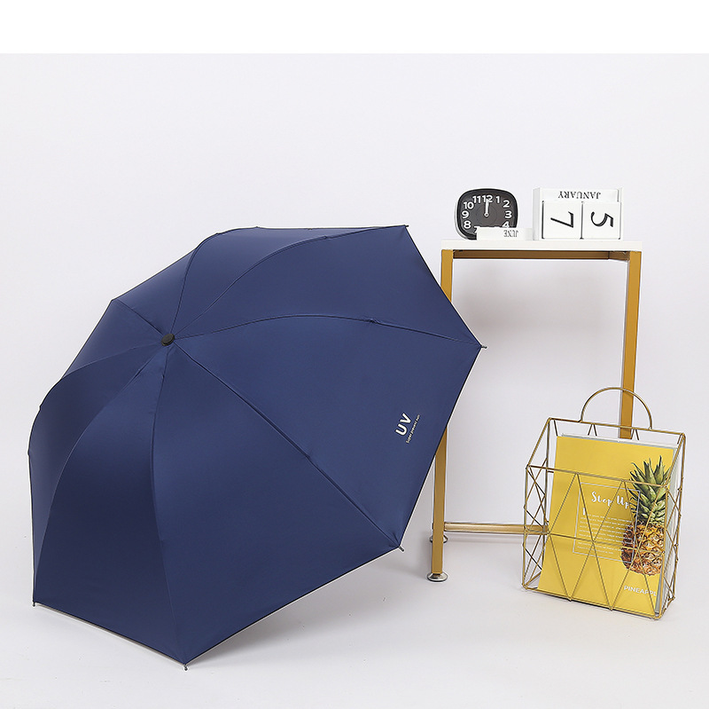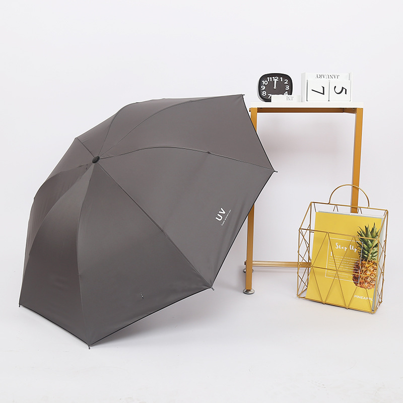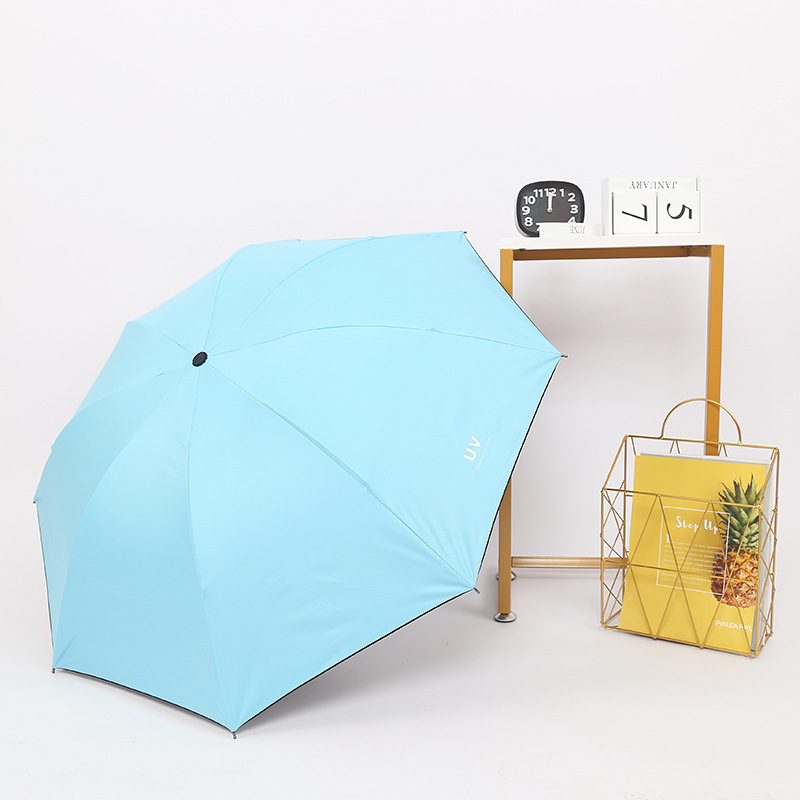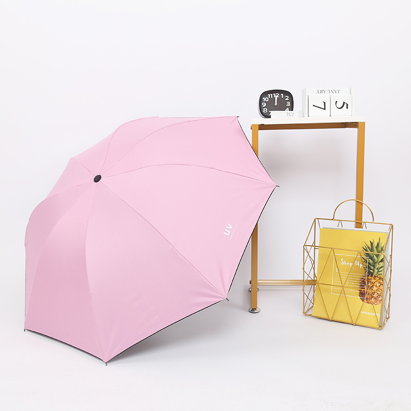 Clear umbrella thickened black plastic sunscreen super strong anti-UV folding custom three-fold umbrella processing