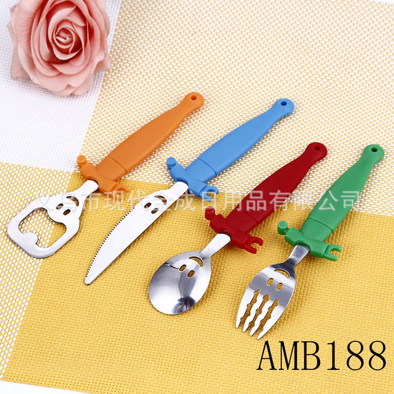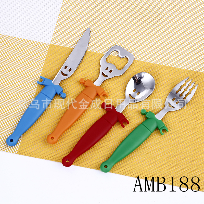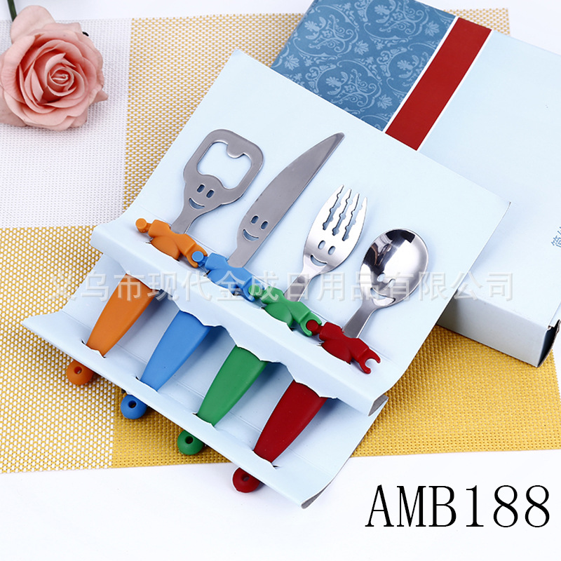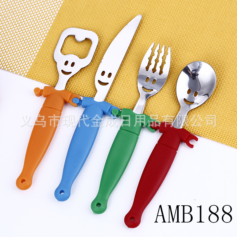 Modern Jincheng Smiley Knife and Fork Opener Set of 4 Color Doll Smiley Student Home Tableware